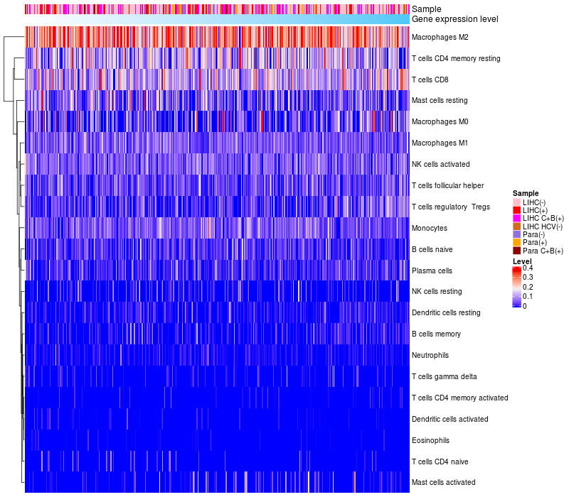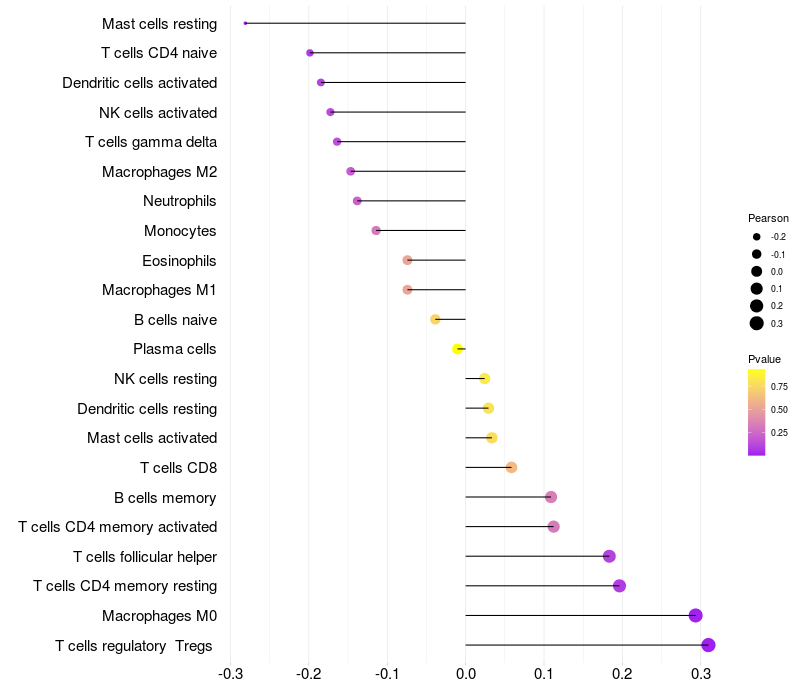 Relationship between gene expression and immune infiltrating cell level