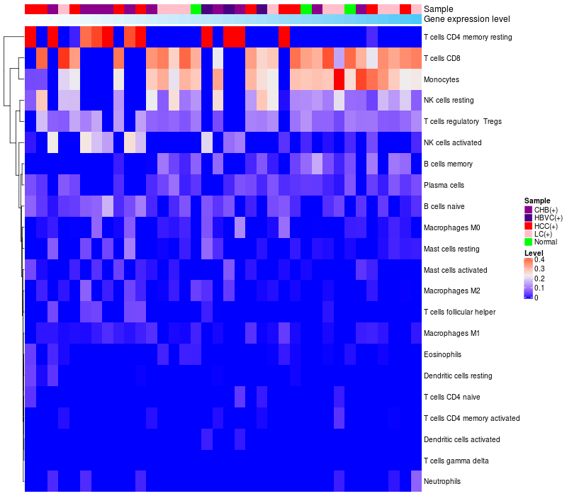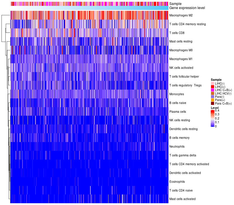 Liver hepatocellular carcinoma HCV (HBV+)(86), Liver hepatocellular carcinoma HCV (HBV-)(19), Liver hepatocellular carcinoma (HBV+)(209), Liver hepatocellular carcinoma (HBV+)(60), Paracancerous HCV (HBV+)(4), Paracancerous (HBV-)(28), Paracancerous (HBV+)(18) |