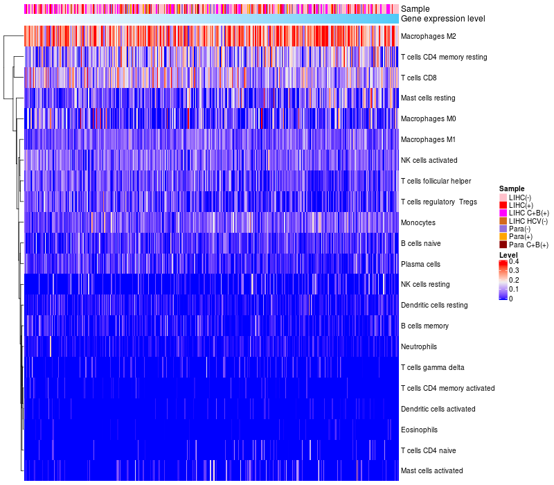 Relationship between gene expression and immune infiltrating cell level