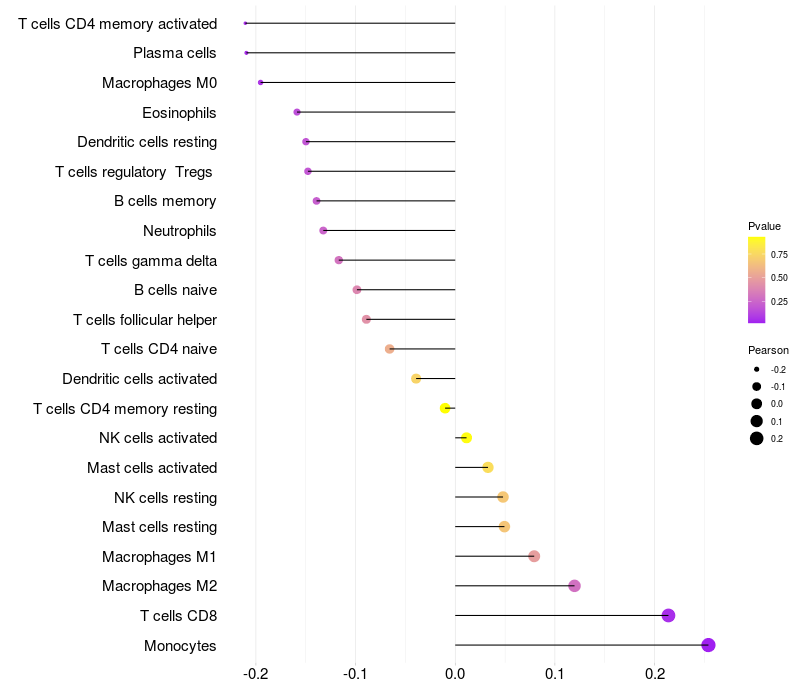 Lollipop of MET expression and immune infiltrating cell level correlation result in HBV+ samples