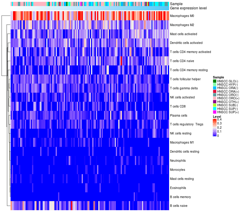 Head and neck Squamous cell carcinomas GLOTTIC LARYNX (EBV-)(2), Head and neck Squamous cell carcinomas HYPOPHARYNX (EBV-)(9), Head and neck Squamous cell carcinomas ORAL CAVITY (EBV-)(23), Head and neck Squamous cell carcinomas ORAL CAVITY (EBV+)(2), Head and neck Squamous cell carcinomas OROPHARYNX (EBV-)(22), Head and neck Squamous cell carcinomas OROPHARYNX (EBV+)(54), Head and neck Squamous cell carcinomas OTHER (EBV+)(1), Head and neck Squamous cell carcinomas SUBGLOTTIC LARYNX (EBV-)(1), Head and neck Squamous cell carcinomas SUPRAGLOTTIC (EBV-)(19), Squamous cell carcinomas SUPRAGLOTTIC (EBV+)(1) |