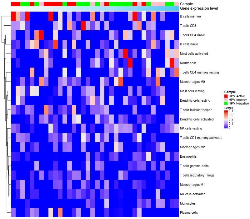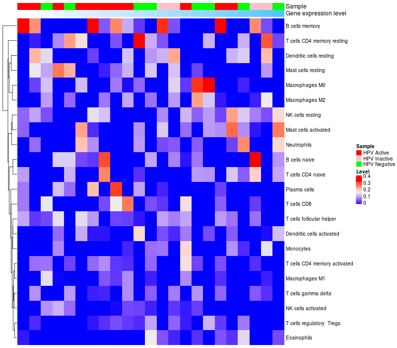 Oropharyngeal cancers HPV Active (12), Oropharyngeal cancers HPV Inactive (8), Oropharyngeal cancers HPV Negative (16) |