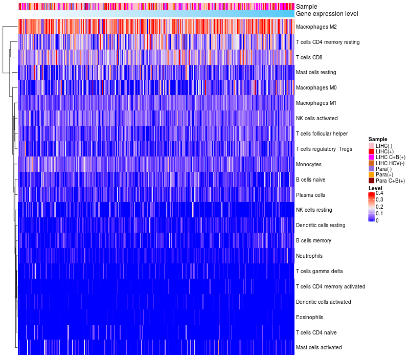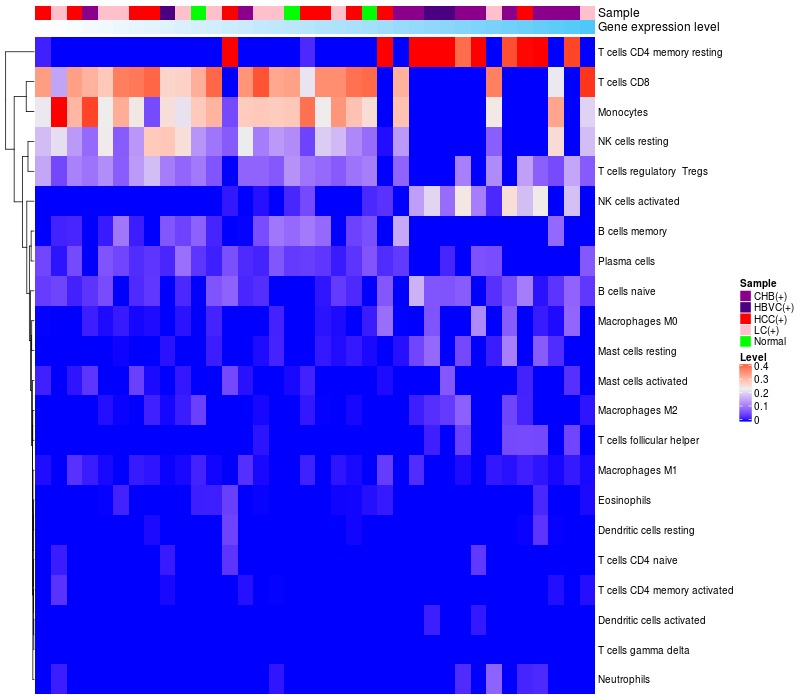 Relationship between gene expression and immune infiltrating cell level