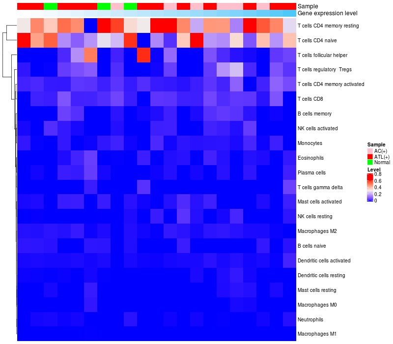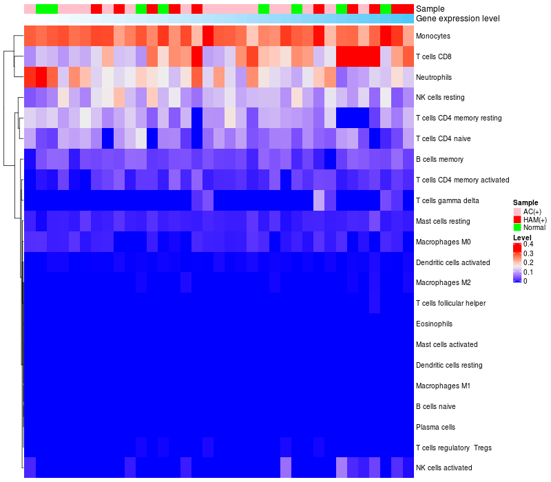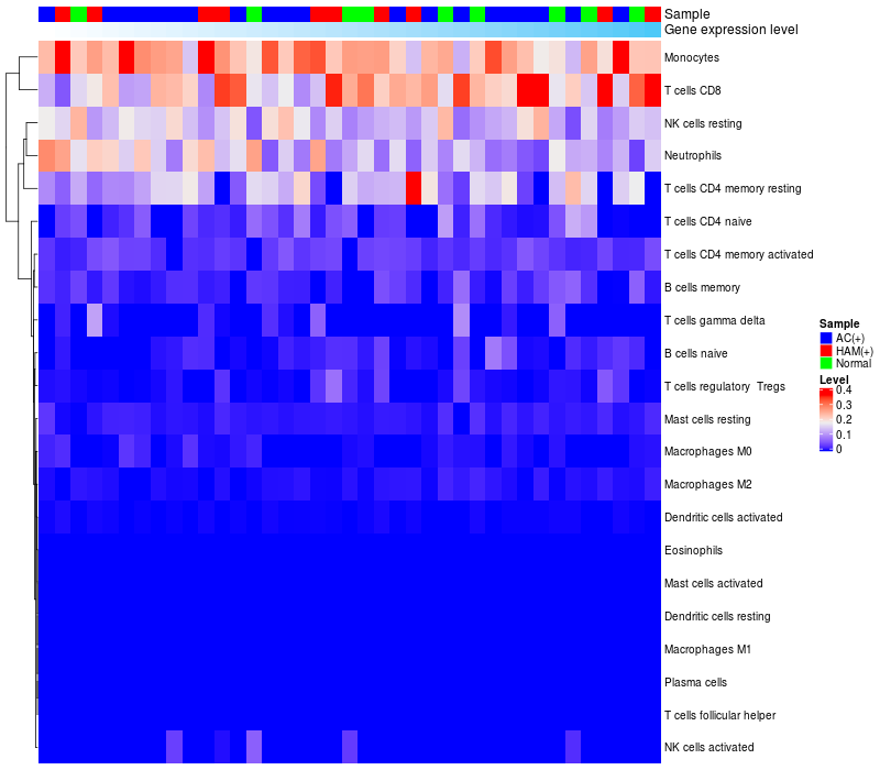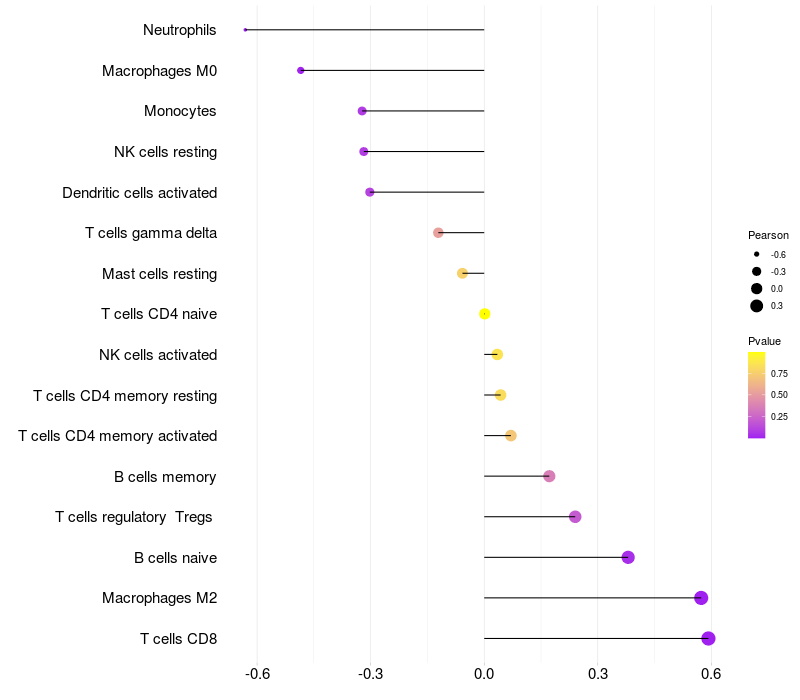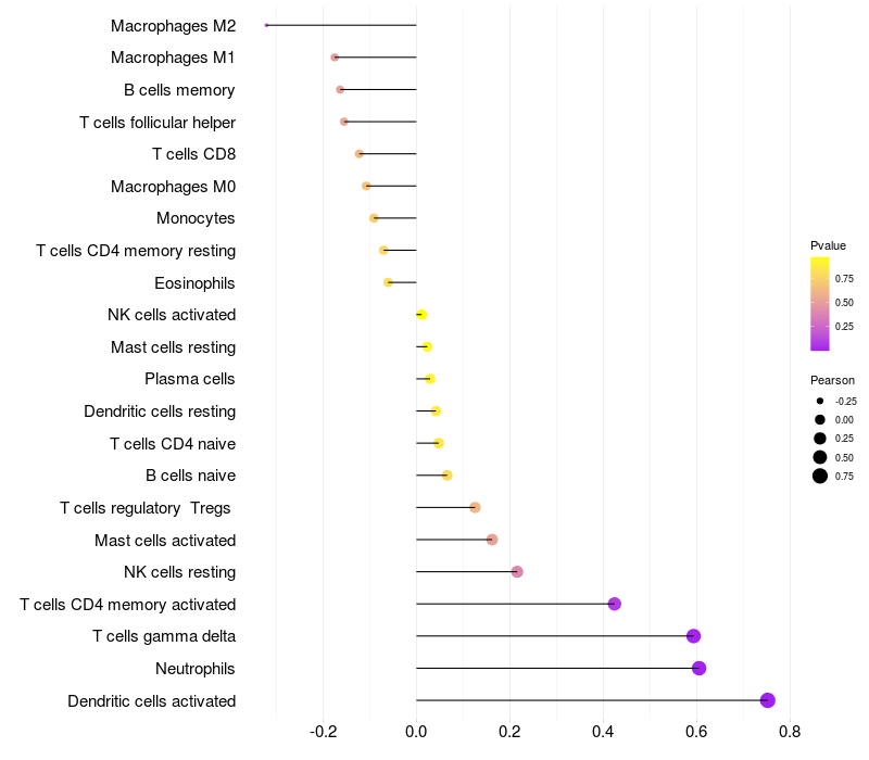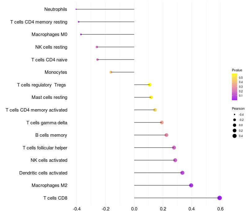 Lollipop of METTL5 expression and immune infiltrating cell level correlation result in HTLV1+ samples