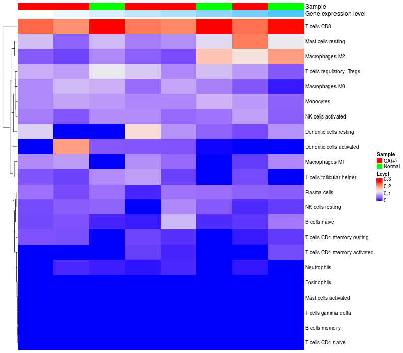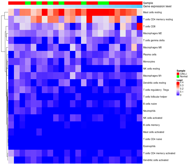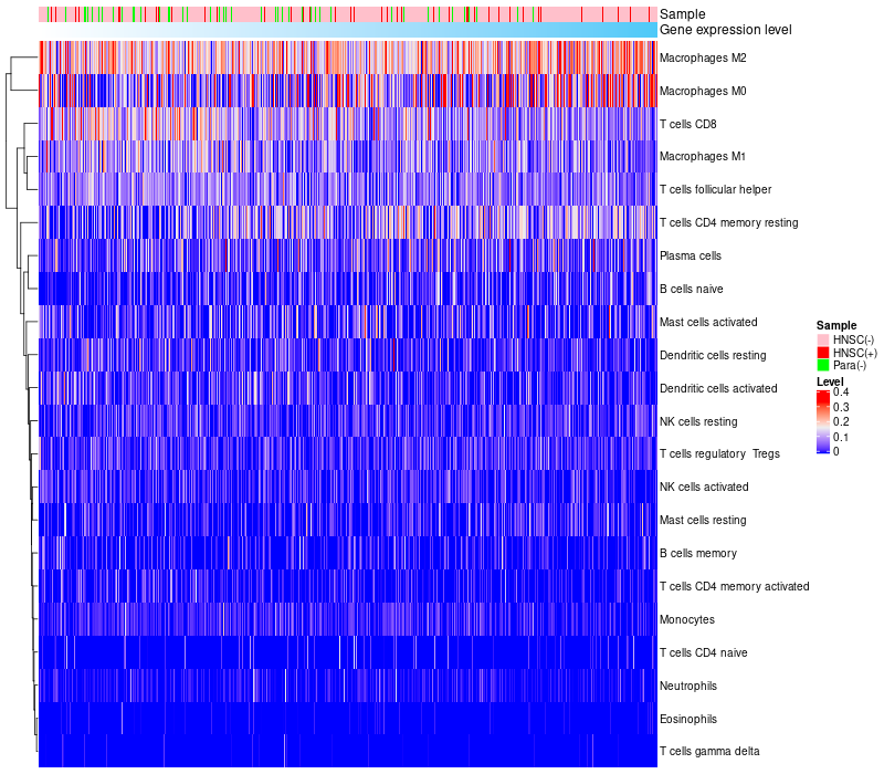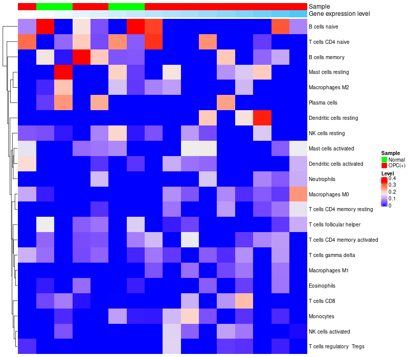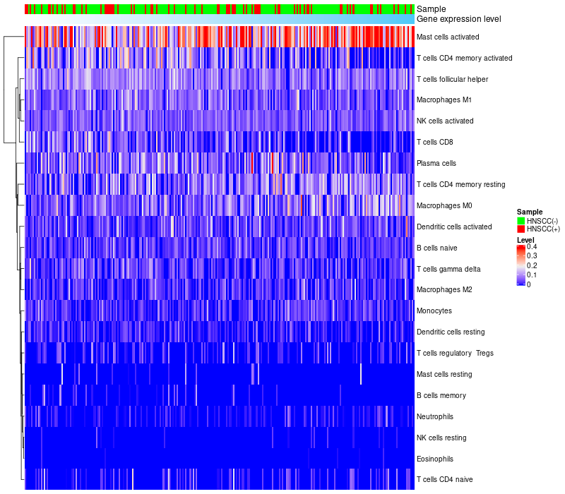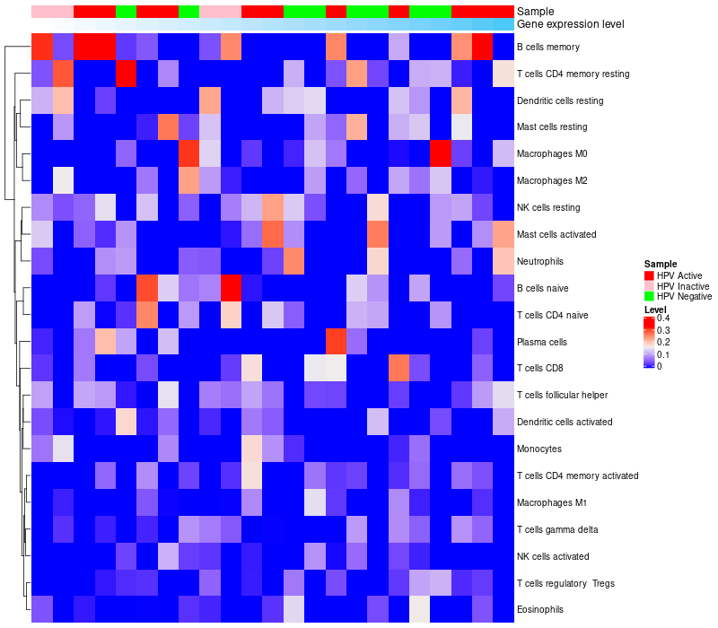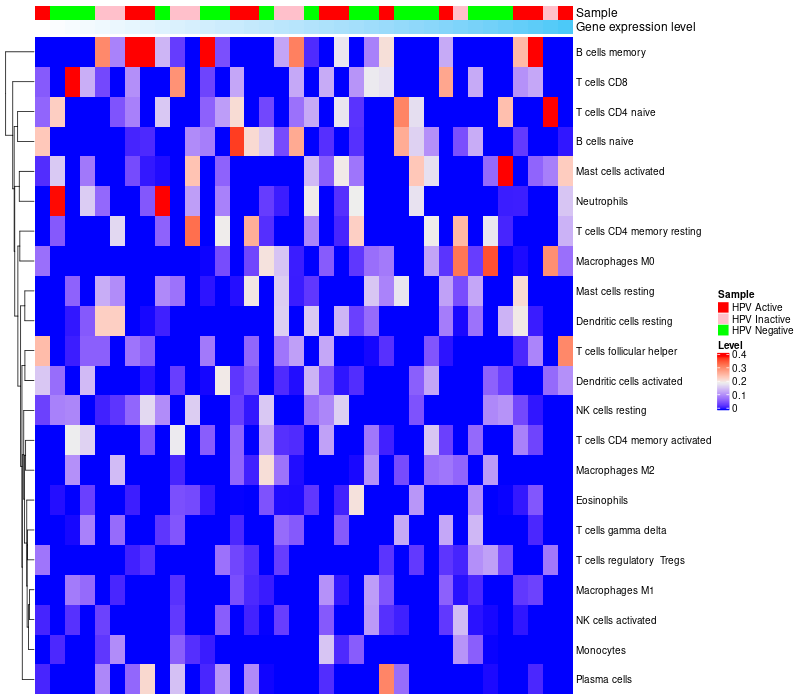 Lollipop of MEX3B expression and immune infiltrating cell level correlation result in HPV+ samples