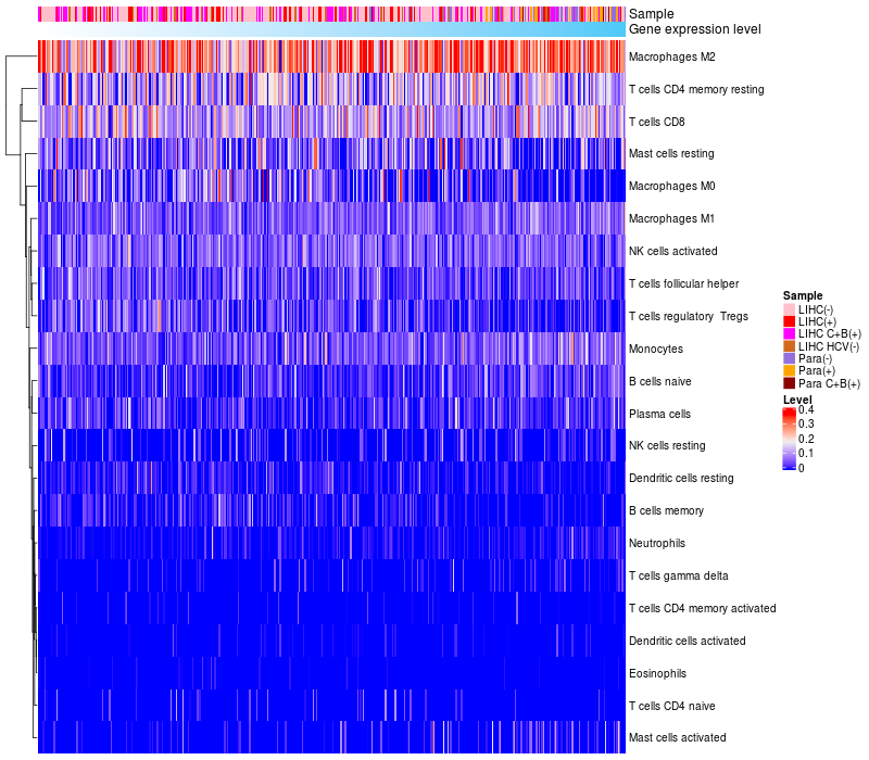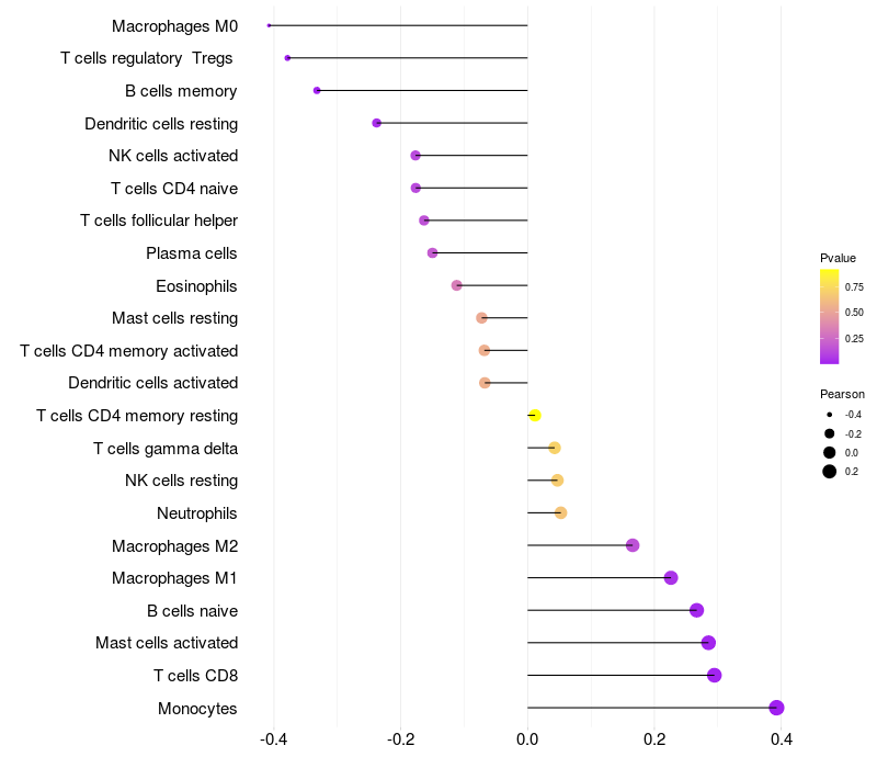 Relationship between gene expression and immune infiltrating cell level