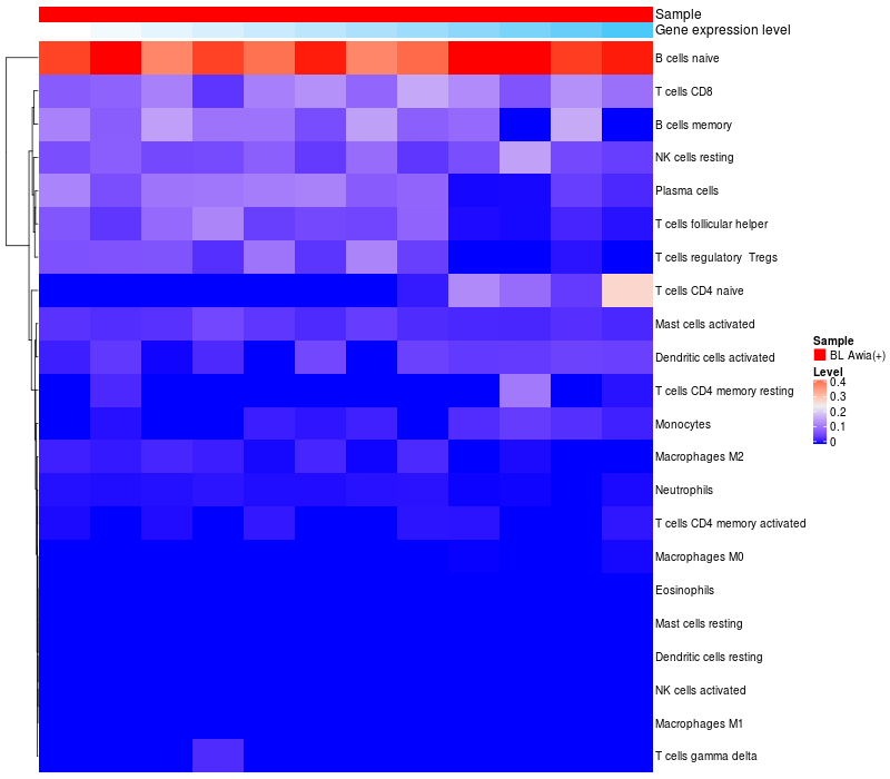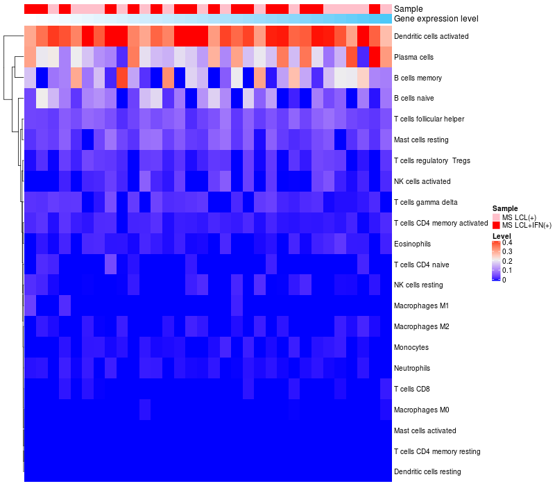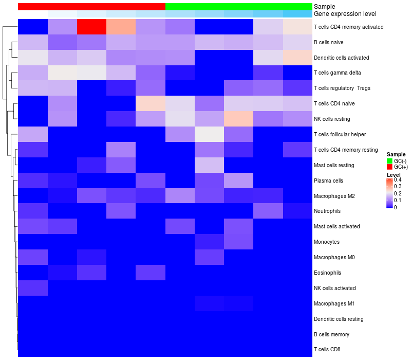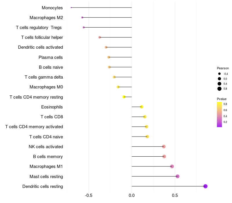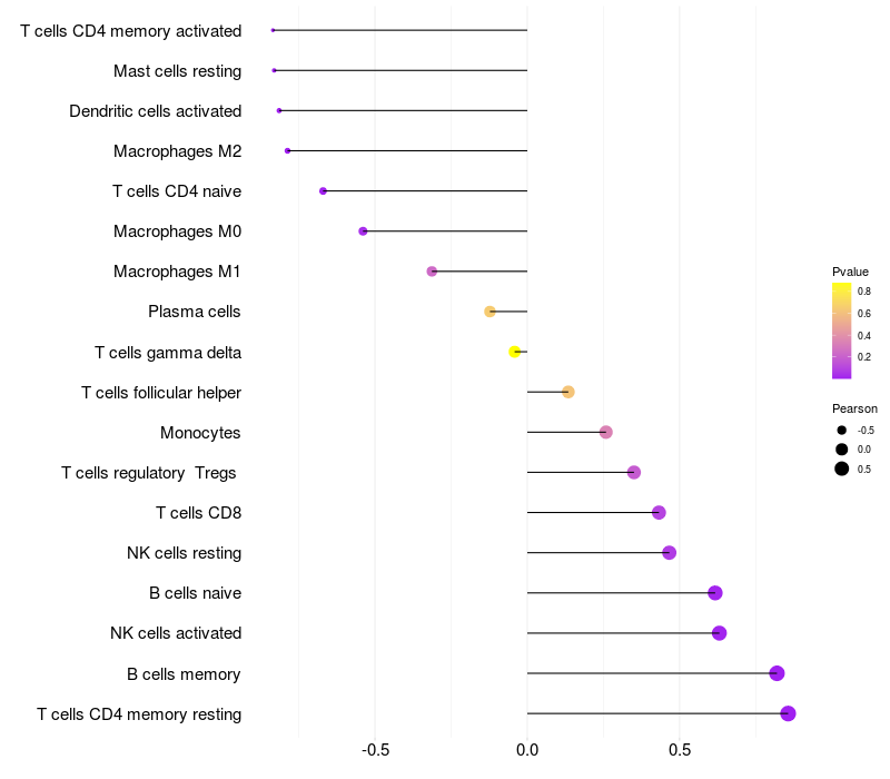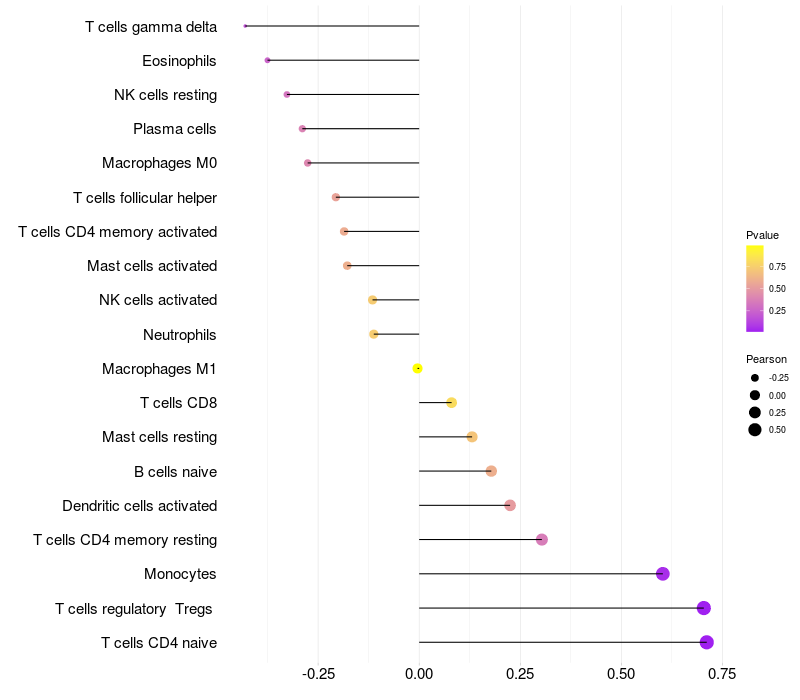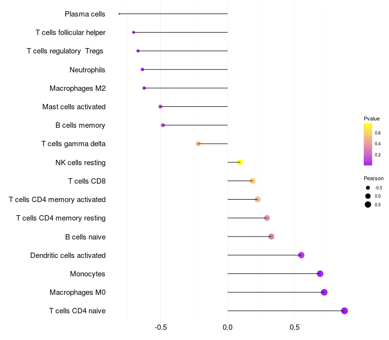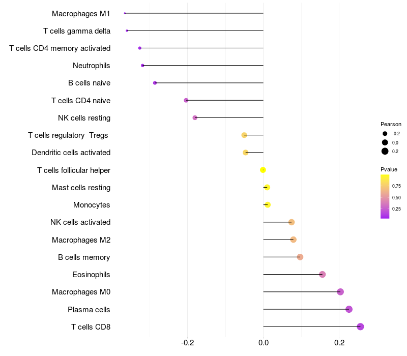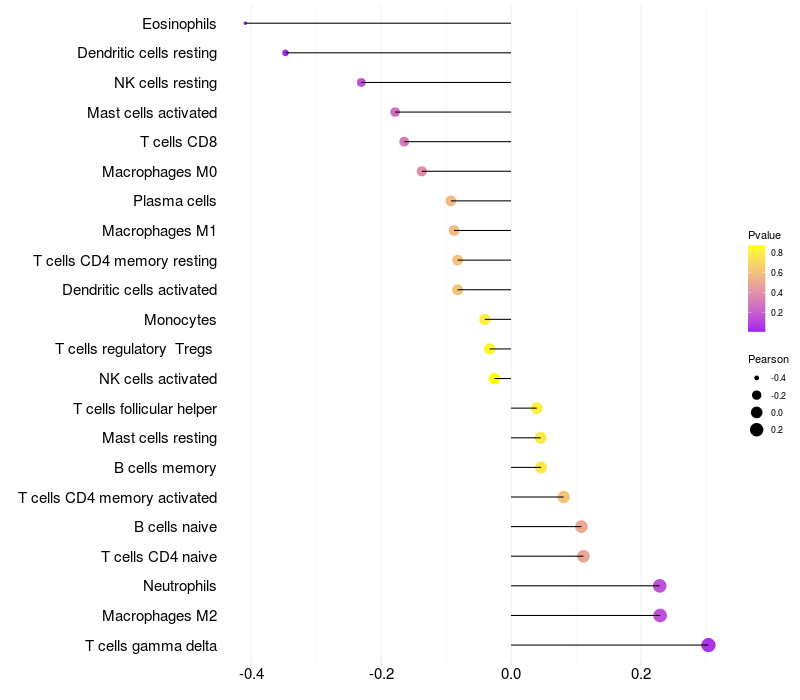 Lollipop of MGAT4A expression and immune infiltrating cell level correlation result in EBV+ samples