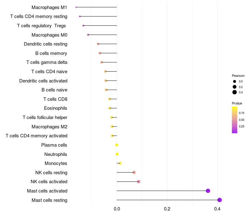 Relationship between gene expression and immune infiltrating cell level