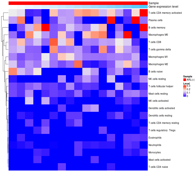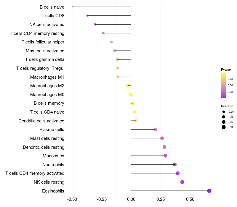 Relationship between gene expression and immune infiltrating cell level