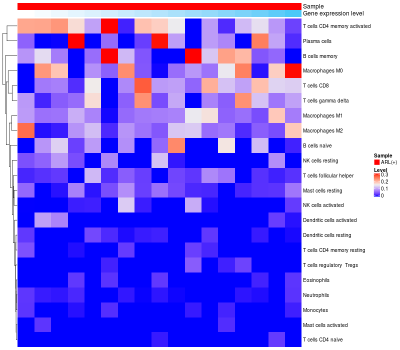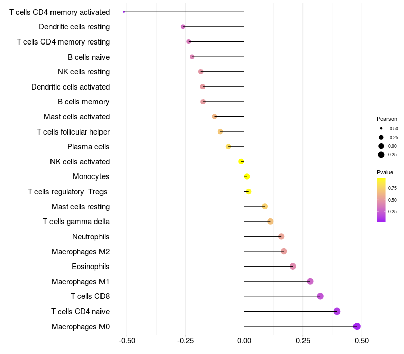 Relationship between gene expression and immune infiltrating cell level