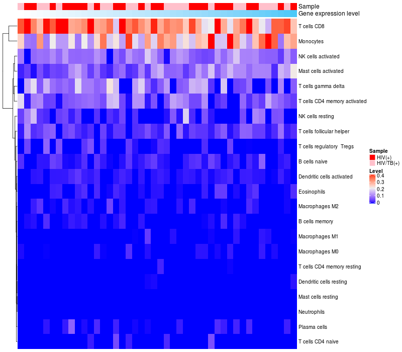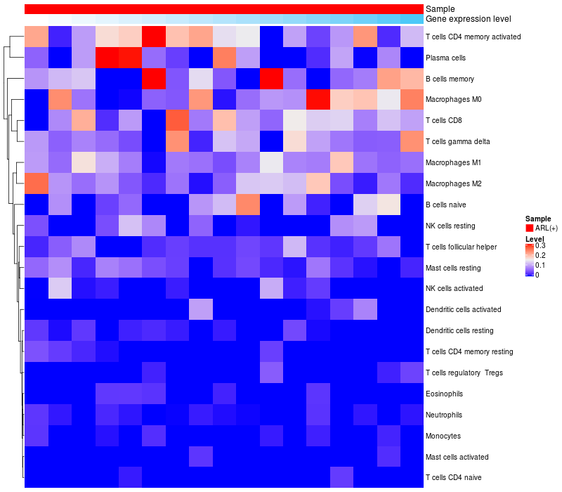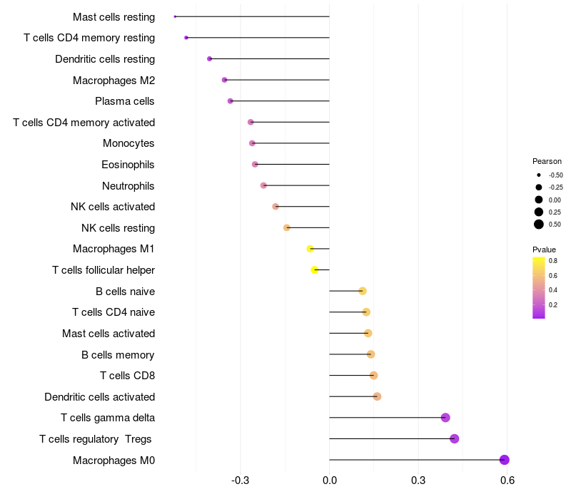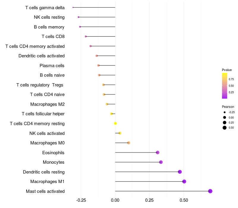 Relationship between gene expression and immune infiltrating cell level