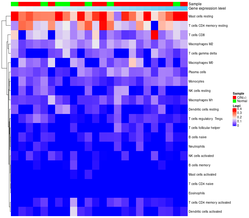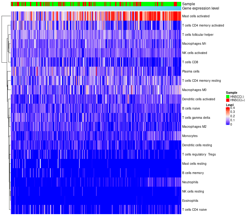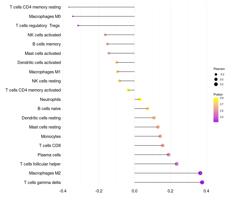 Lollipop of MIR1275 expression and immune infiltrating cell level correlation result in HPV+ samples