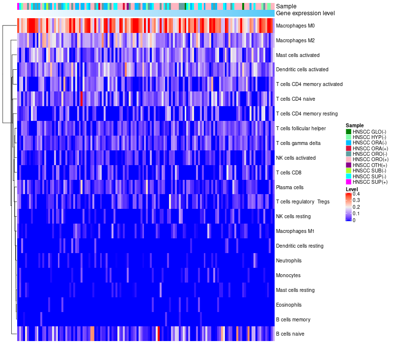Head and neck Squamous cell carcinomas GLOTTIC LARYNX (EBV-)(2), Head and neck Squamous cell carcinomas HYPOPHARYNX (EBV-)(9), Head and neck Squamous cell carcinomas ORAL CAVITY (EBV-)(23), Head and neck Squamous cell carcinomas ORAL CAVITY (EBV+)(2), Head and neck Squamous cell carcinomas OROPHARYNX (EBV-)(22), Head and neck Squamous cell carcinomas OROPHARYNX (EBV+)(54), Head and neck Squamous cell carcinomas OTHER (EBV+)(1), Head and neck Squamous cell carcinomas SUBGLOTTIC LARYNX (EBV-)(1), Head and neck Squamous cell carcinomas SUPRAGLOTTIC (EBV-)(19), Squamous cell carcinomas SUPRAGLOTTIC (EBV+)(1) |