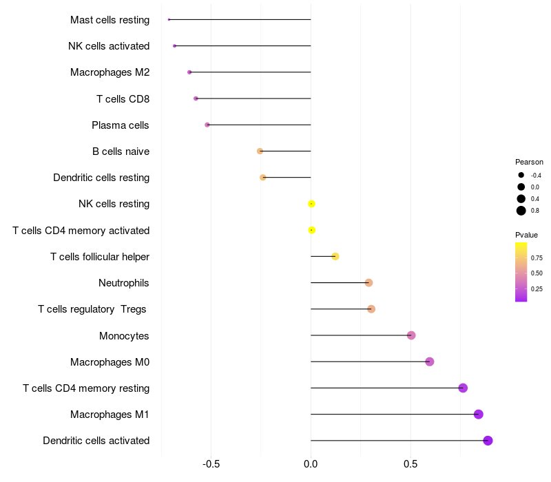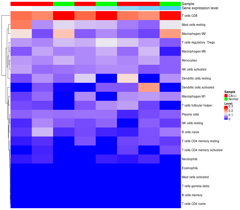 Relationship between gene expression and immune infiltrating cell level