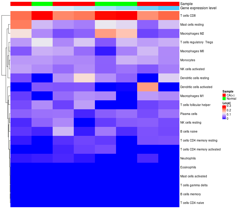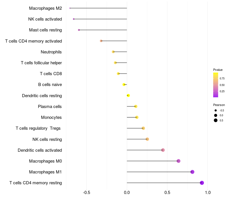 Relationship between gene expression and immune infiltrating cell level