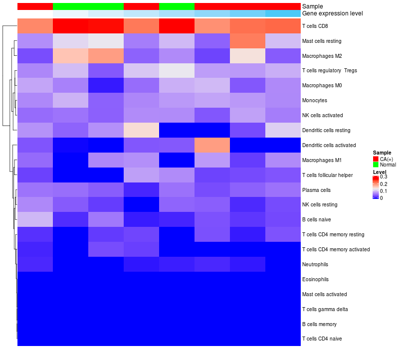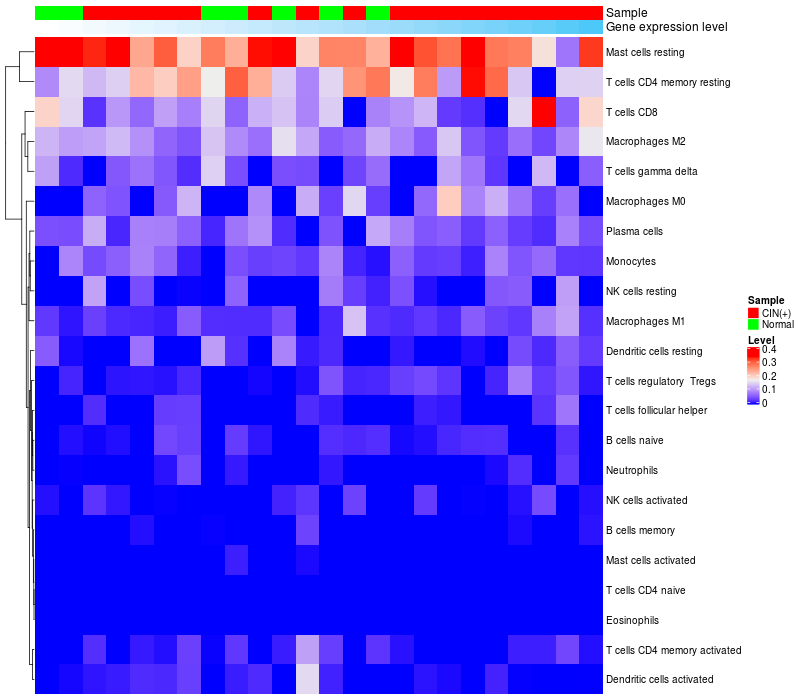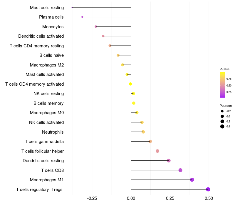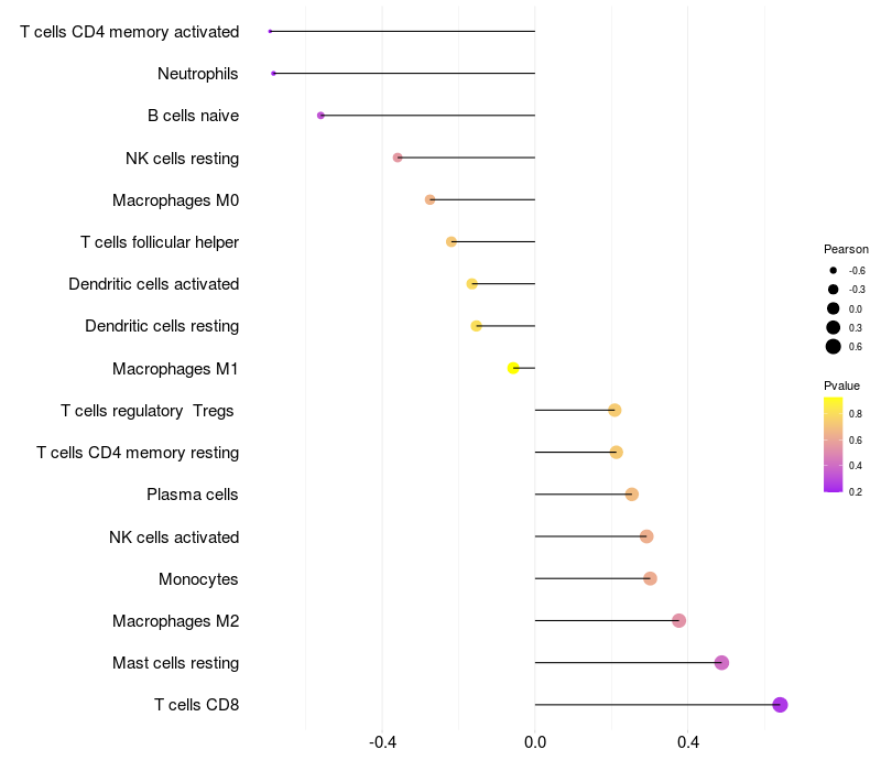 Relationship between gene expression and immune infiltrating cell level