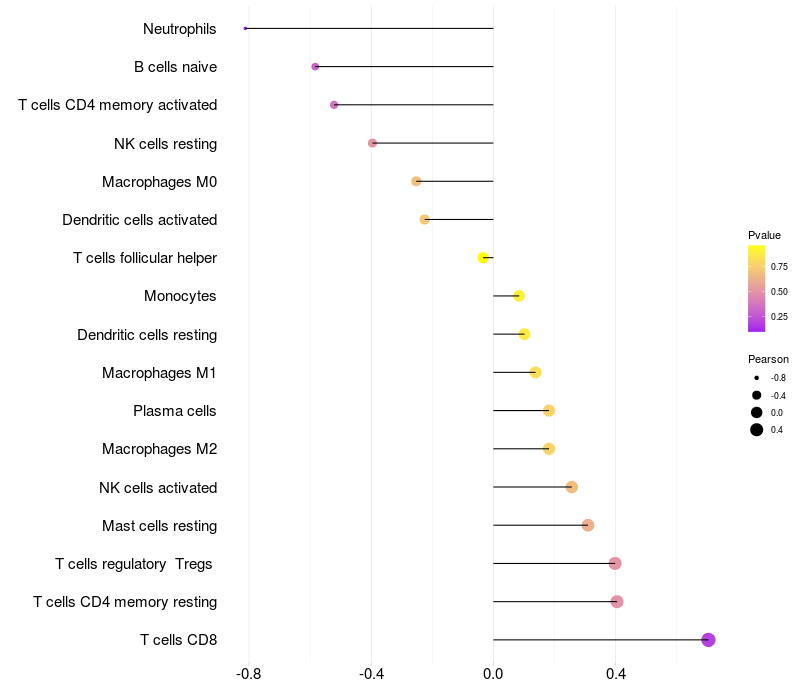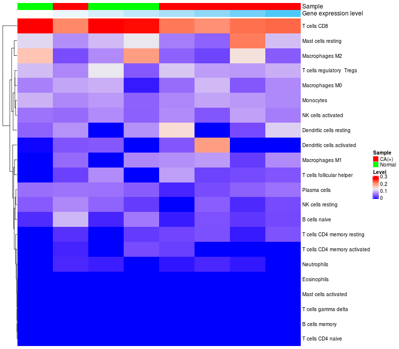 Relationship between gene expression and immune infiltrating cell level