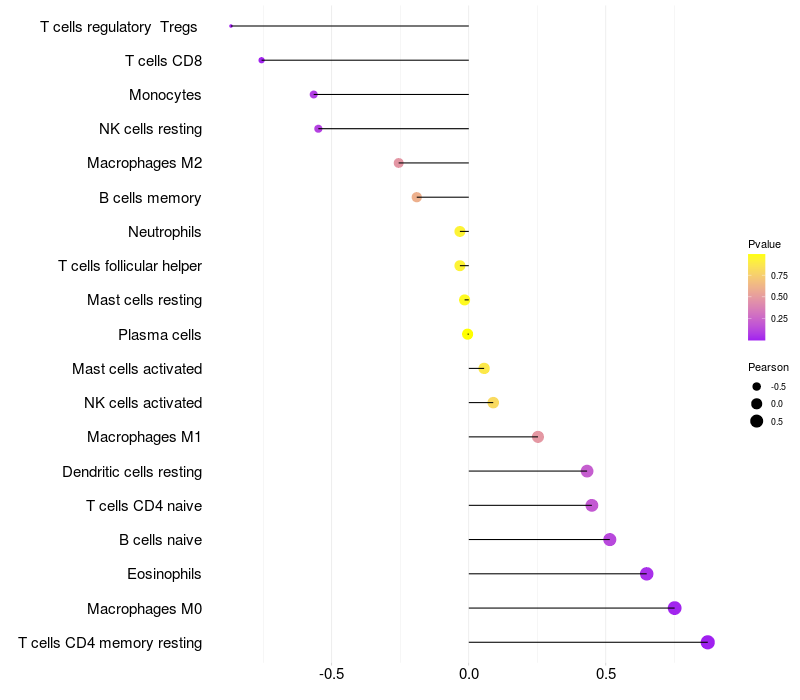 Lollipop of MITF expression and immune infiltrating cell level correlation result in HBV+ Liver cirrhosis samples