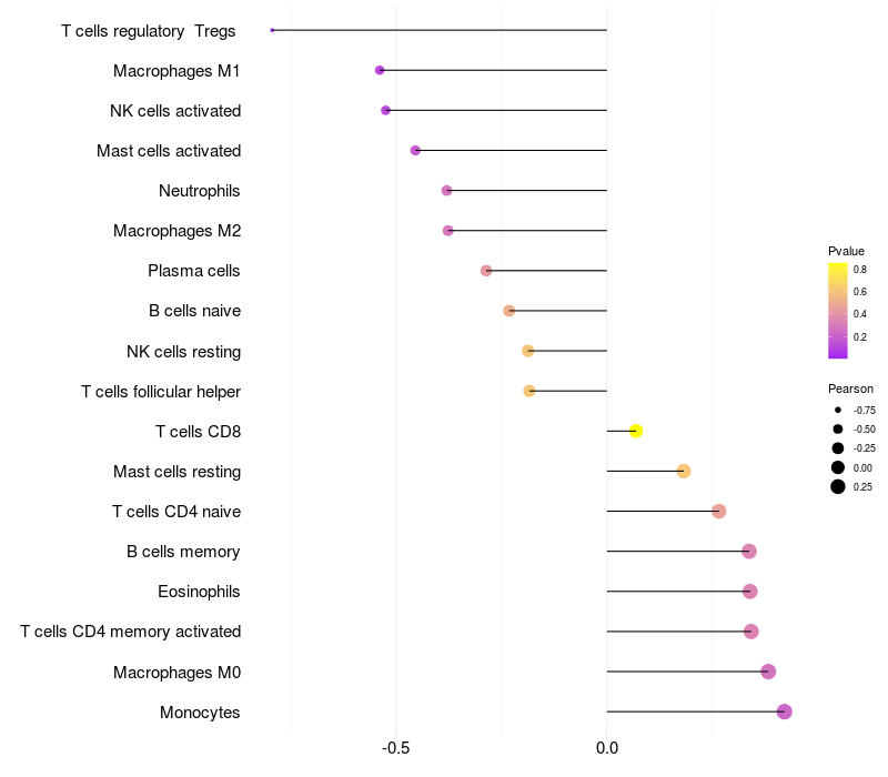Lollipop of MITF expression and immune infiltrating cell level correlation result in HBV+ samples