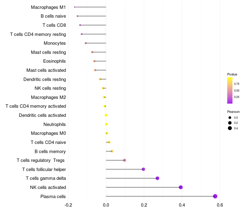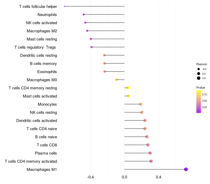Lollipop of MLPH expression and immune infiltrating cell level correlation result in HBV+ Liver cirrhosis samples