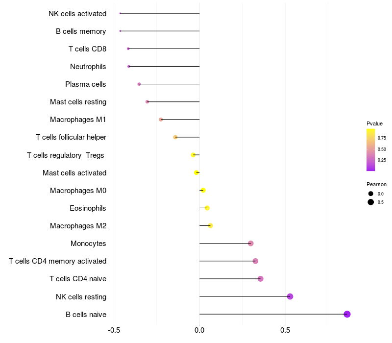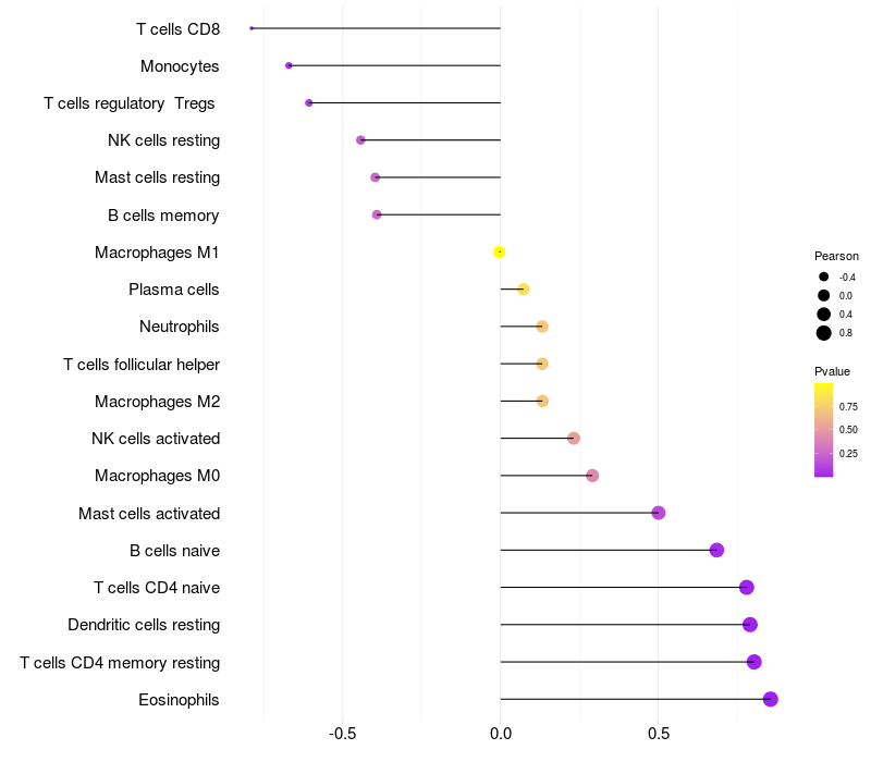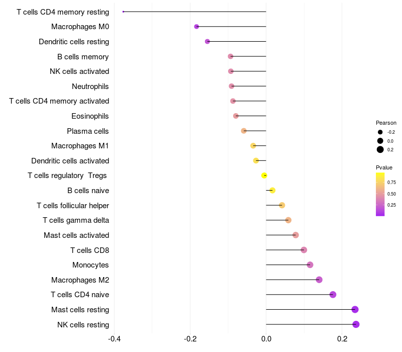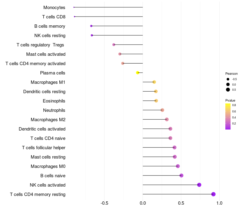 Lollipop of MMAB expression and immune infiltrating cell level correlation result in HBV+ Liver cirrhosis samples
