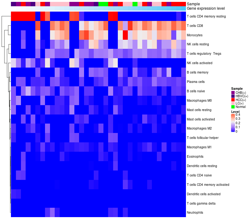 Liver hepatocellular carcinoma HCV (HBV+)(86), Liver hepatocellular carcinoma HCV (HBV-)(19), Liver hepatocellular carcinoma (HBV+)(209), Liver hepatocellular carcinoma (HBV+)(60), Paracancerous HCV (HBV+)(4), Paracancerous (HBV-)(28), Paracancerous (HBV+)(18) |