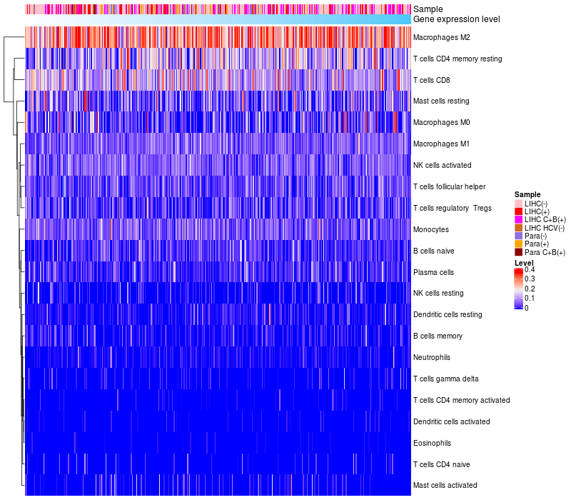 Liver hepatocellular carcinoma HCV (HBV+)(86), Liver hepatocellular carcinoma HCV (HBV-)(19), Liver hepatocellular carcinoma (HBV+)(209), Liver hepatocellular carcinoma (HBV+)(60), Paracancerous HCV (HBV+)(4), Paracancerous (HBV-)(28), Paracancerous (HBV+)(18) |