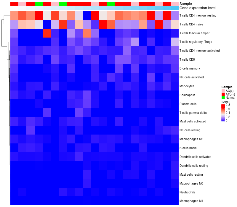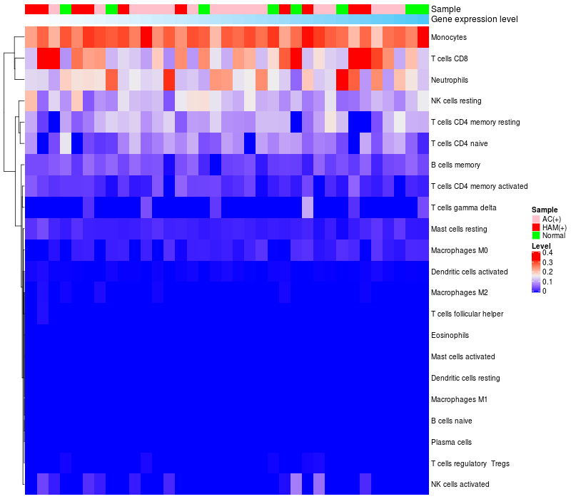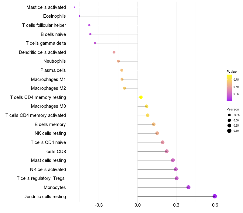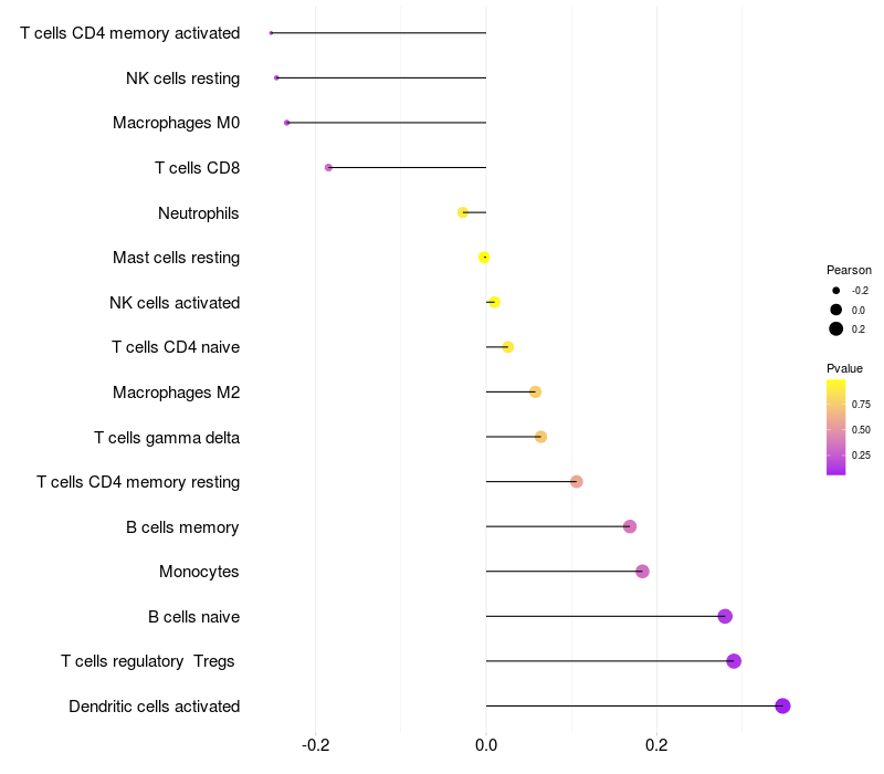 Lollipop of MORN1 expression and immune infiltrating cell level correlation result in HTLV1+ samples