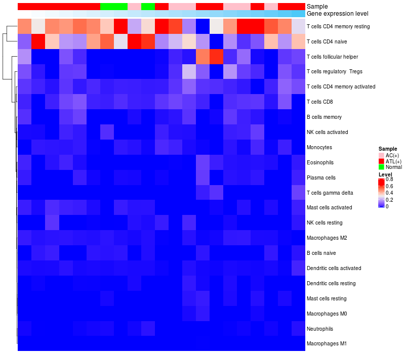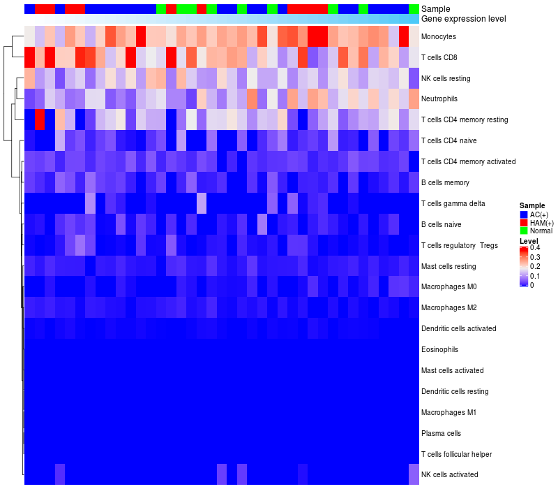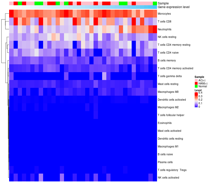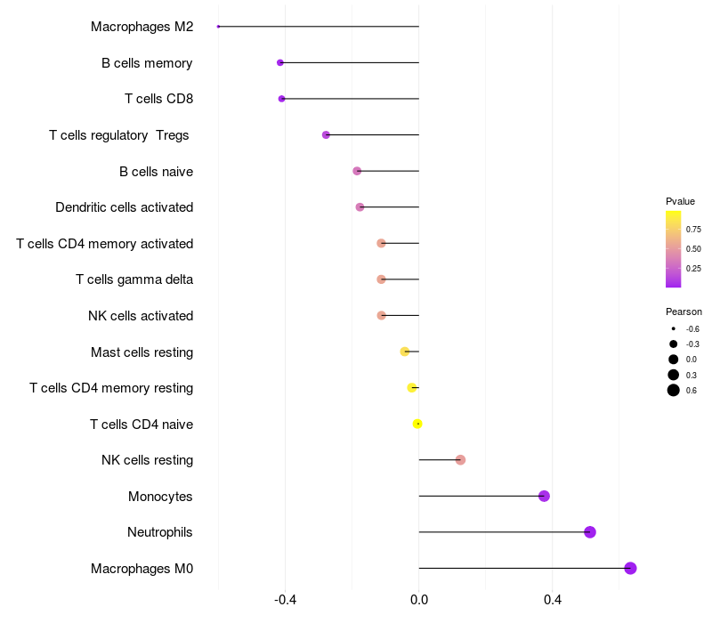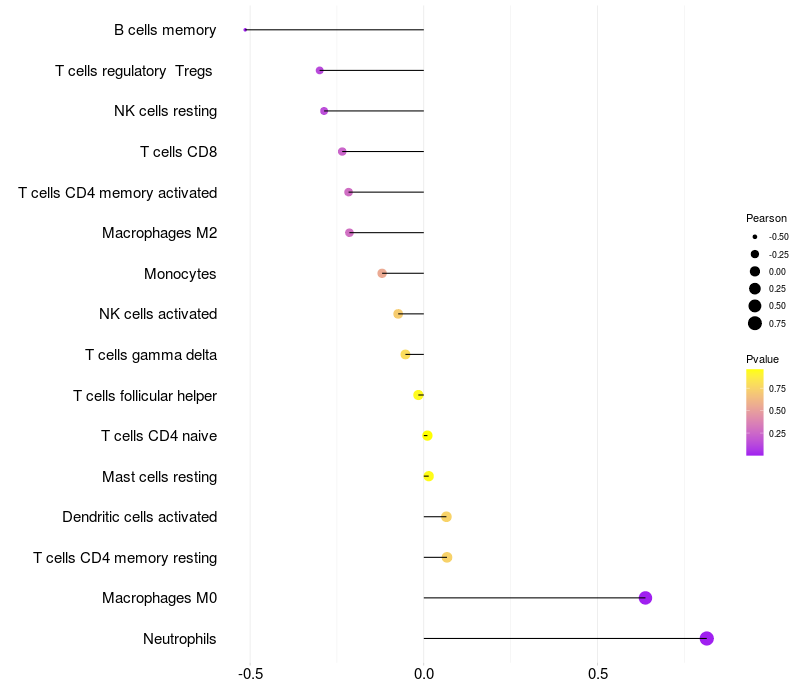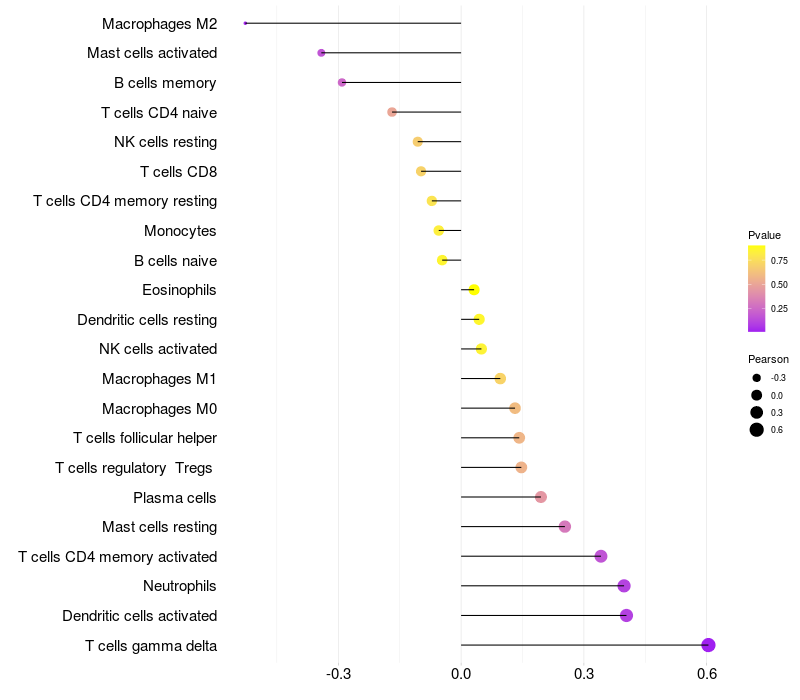 Lollipop of MOSPD2 expression and immune infiltrating cell level correlation result in HTLV1+ samples