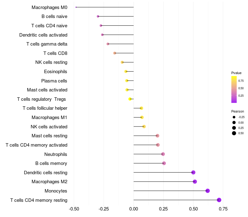 Relationship between gene expression and immune infiltrating cell level