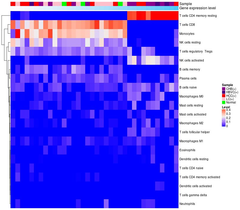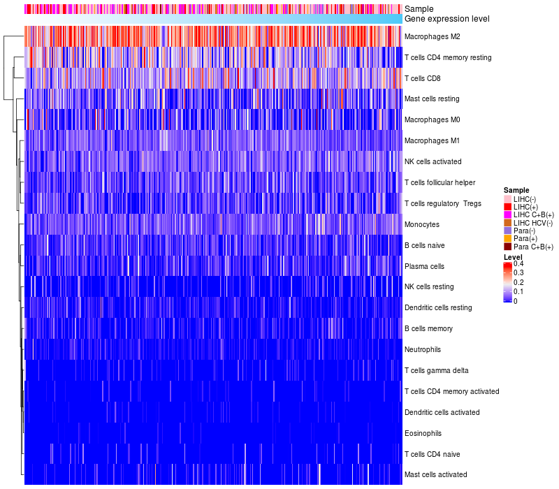 Relationship between gene expression and immune infiltrating cell level