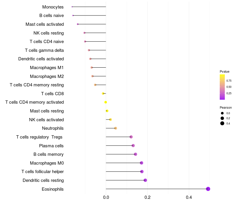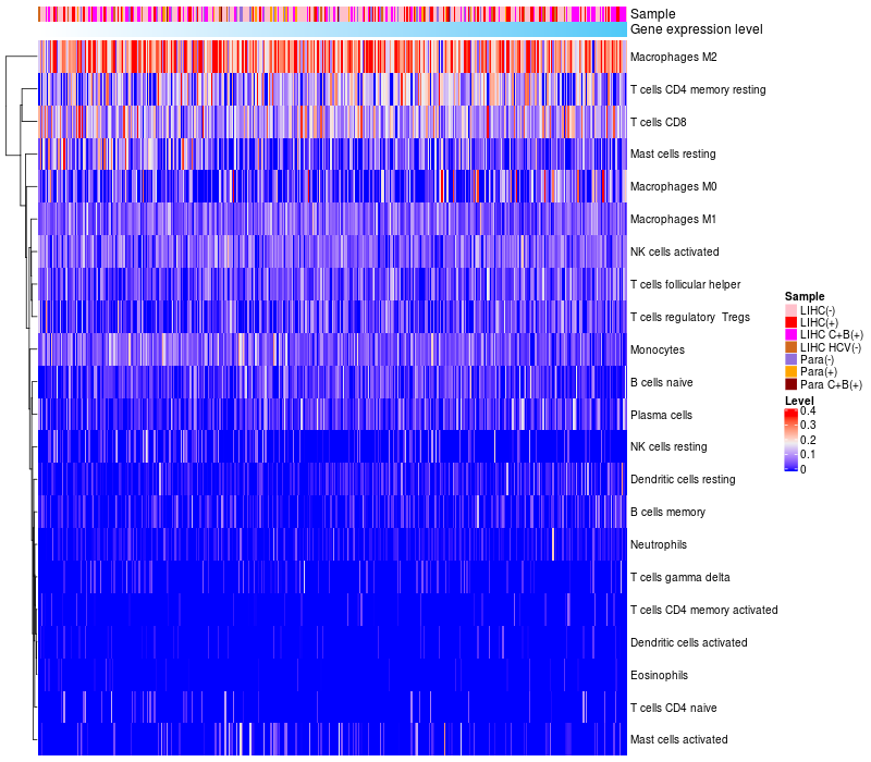 Relationship between gene expression and immune infiltrating cell level