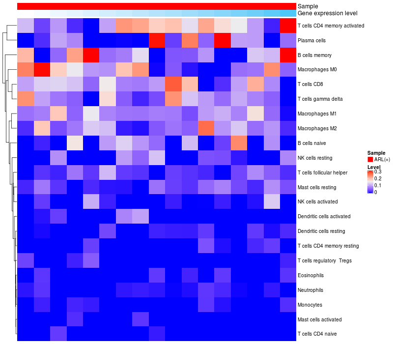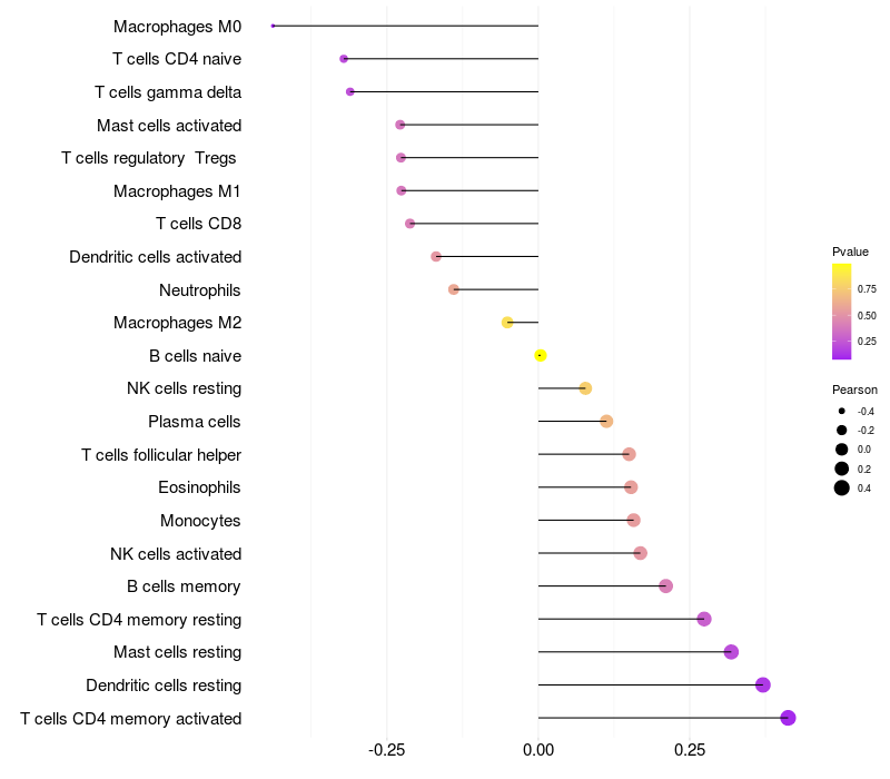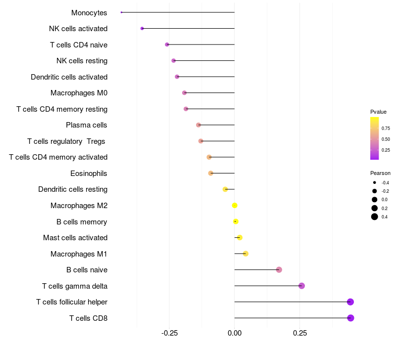 Relationship between gene expression and immune infiltrating cell level