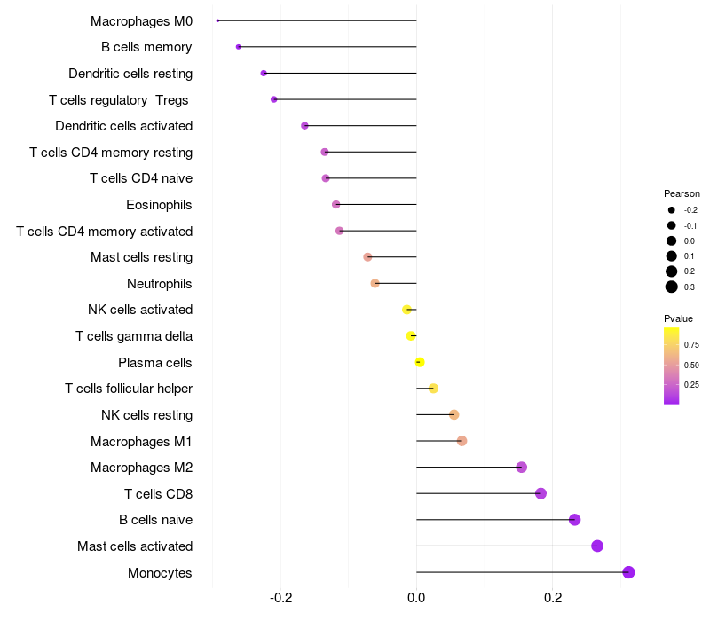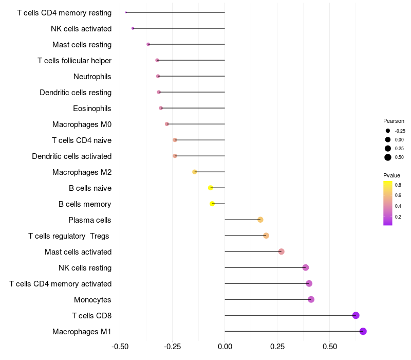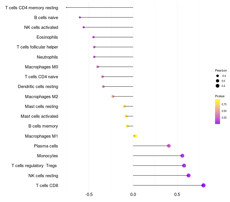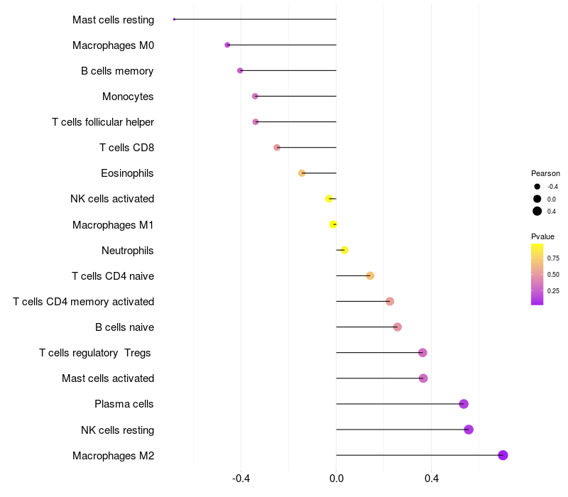Lollipop of MPPED1 expression and immune infiltrating cell level correlation result in HBV+ Liver cirrhosis samples