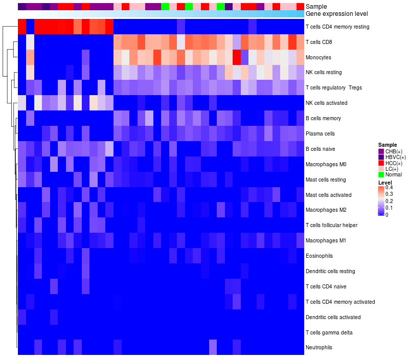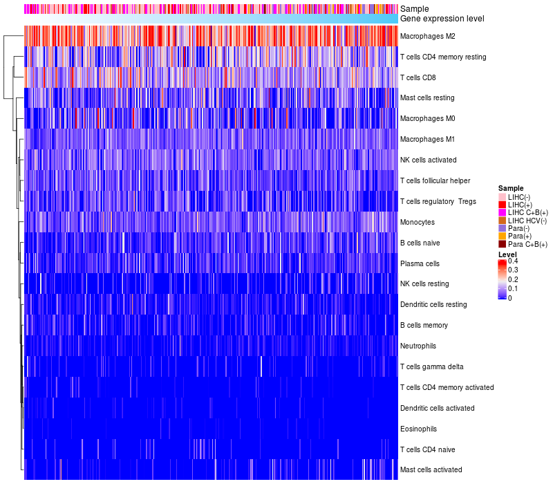 Liver hepatocellular carcinoma HCV (HBV+)(86), Liver hepatocellular carcinoma HCV (HBV-)(19), Liver hepatocellular carcinoma (HBV+)(209), Liver hepatocellular carcinoma (HBV+)(60), Paracancerous HCV (HBV+)(4), Paracancerous (HBV-)(28), Paracancerous (HBV+)(18) |