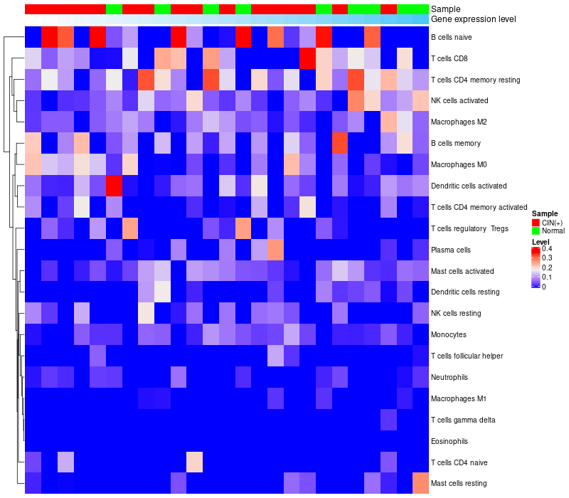 Normal (10), Cervical intraepithelial neoplasia (HPV+)(15) |