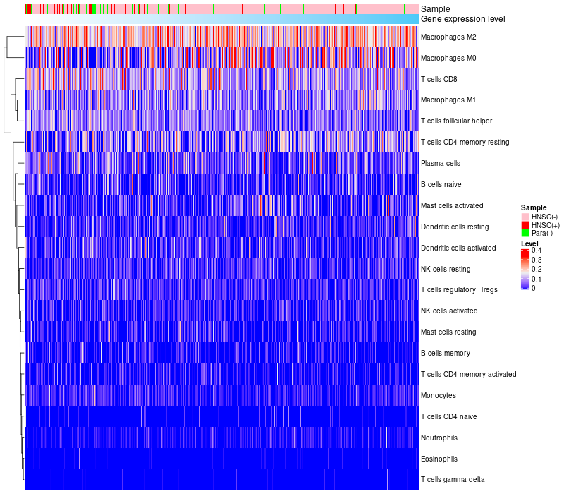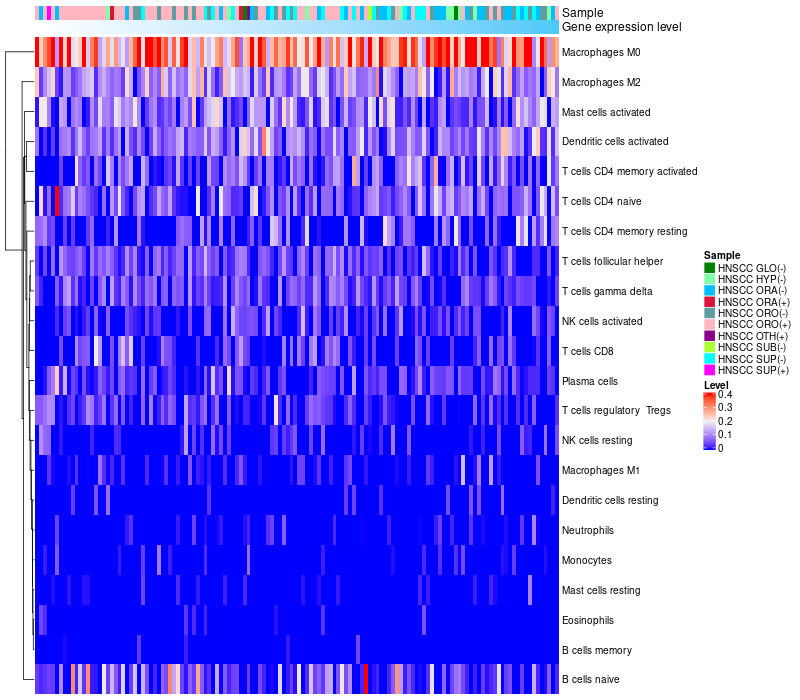 Head and Neck squamous cell carcinoma(HPV-)(483),Head and Neck squamous cell carcinoma(HPV+)(39),Paracancerous(HPV-)(44) |