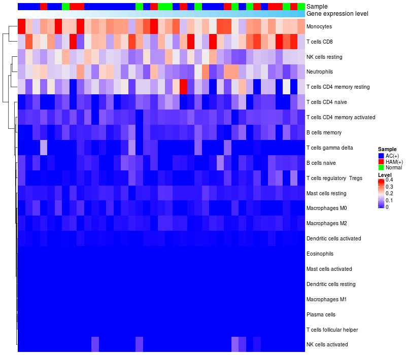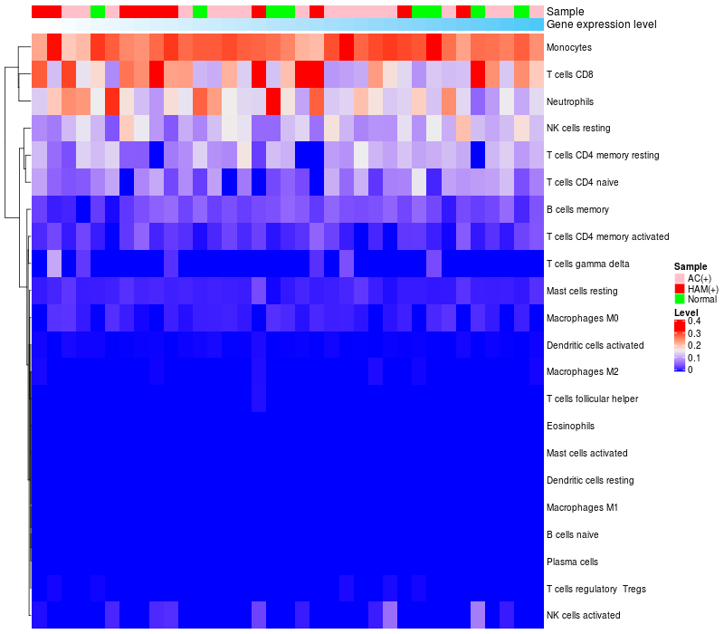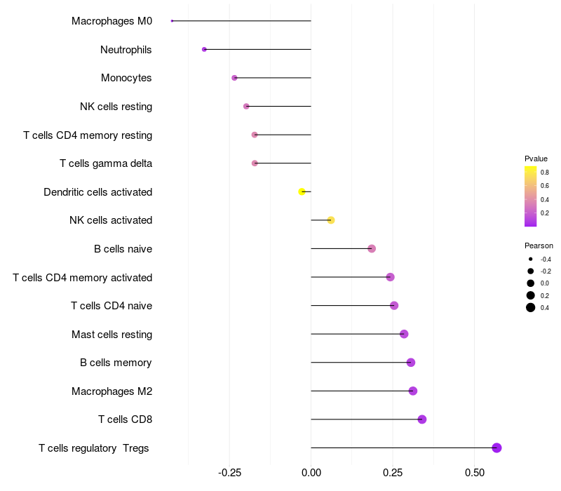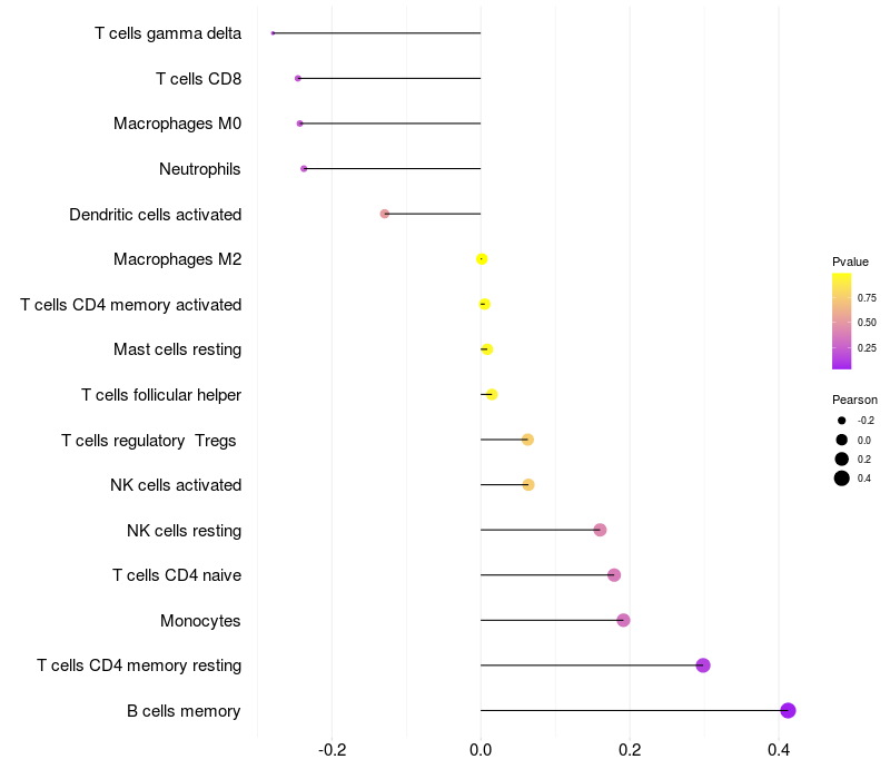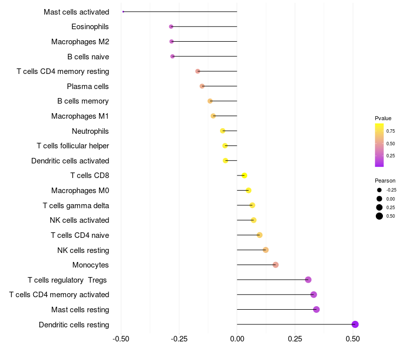 Lollipop of MRAS expression and immune infiltrating cell level correlation result in HTLV1+ samples