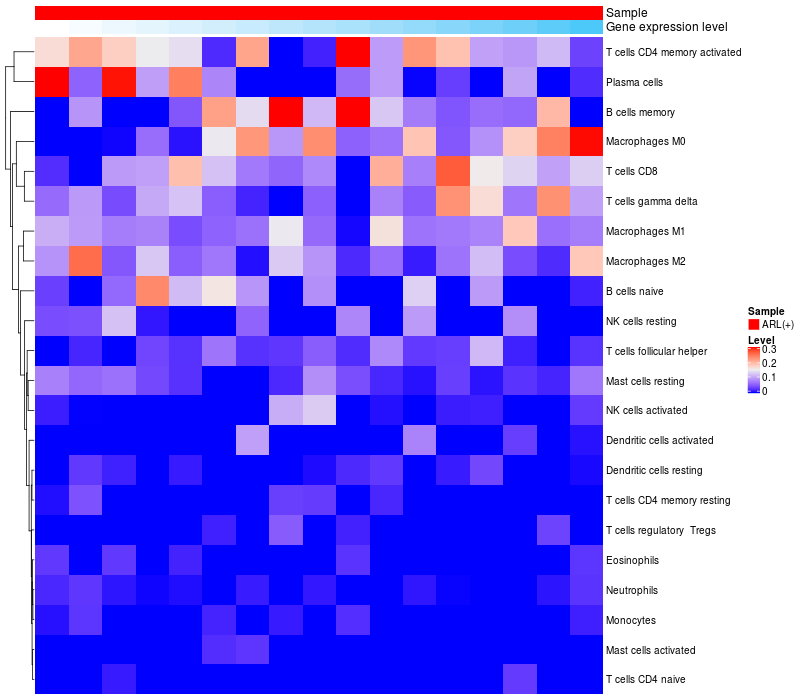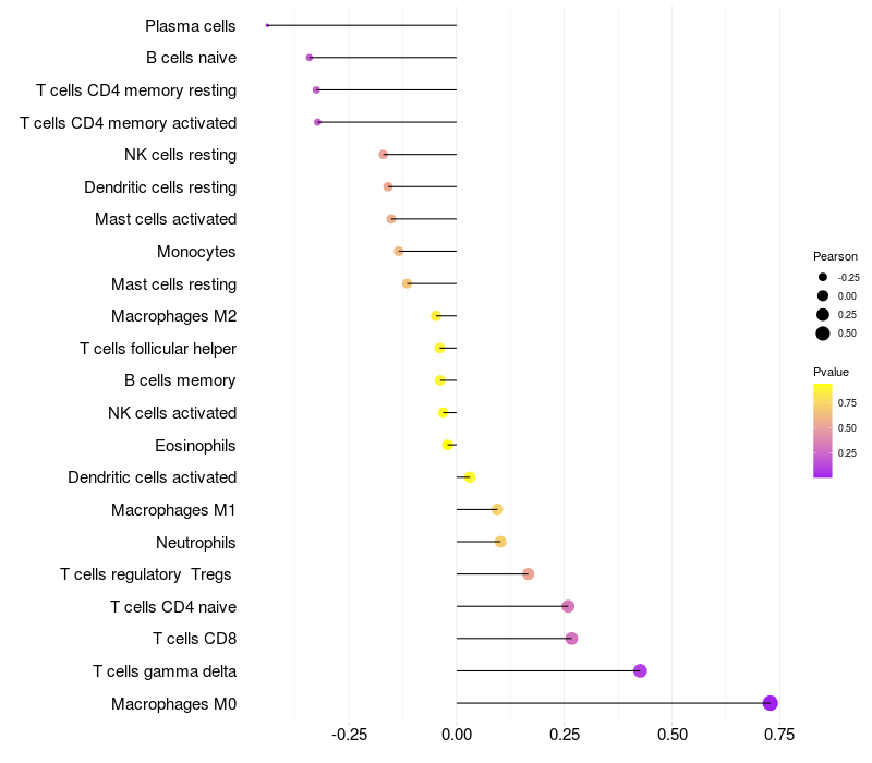 Relationship between gene expression and immune infiltrating cell level