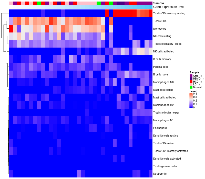 Liver hepatocellular carcinoma HCV (HBV+)(86), Liver hepatocellular carcinoma HCV (HBV-)(19), Liver hepatocellular carcinoma (HBV+)(209), Liver hepatocellular carcinoma (HBV+)(60), Paracancerous HCV (HBV+)(4), Paracancerous (HBV-)(28), Paracancerous (HBV+)(18) |