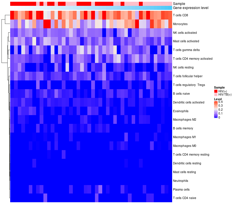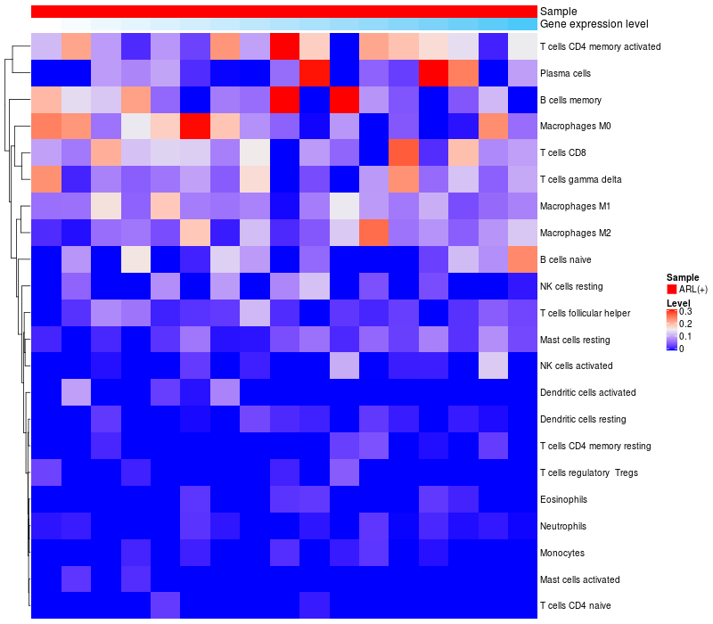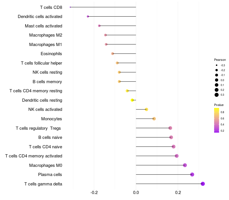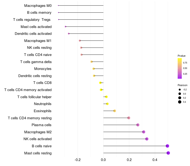 Relationship between gene expression and immune infiltrating cell level