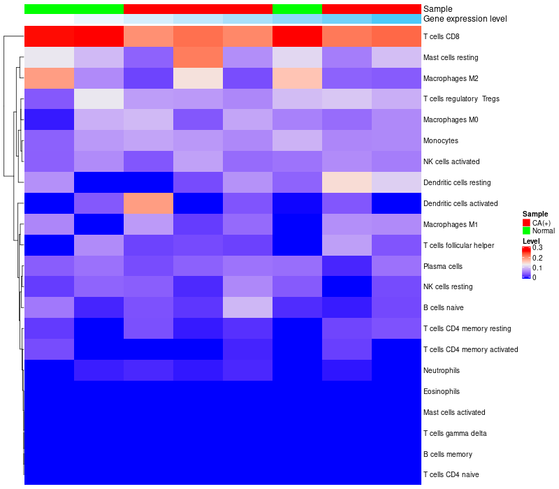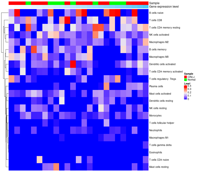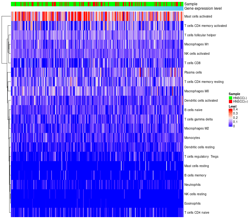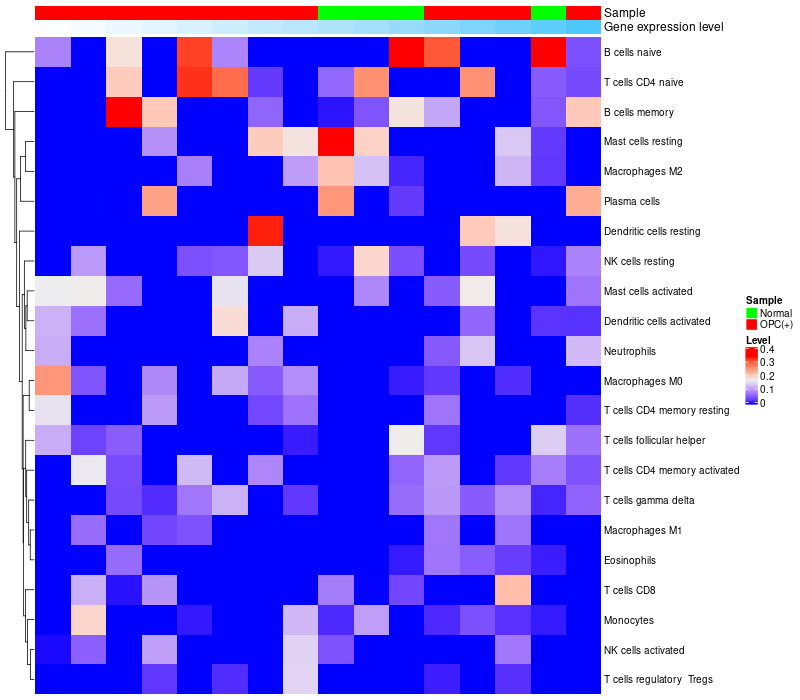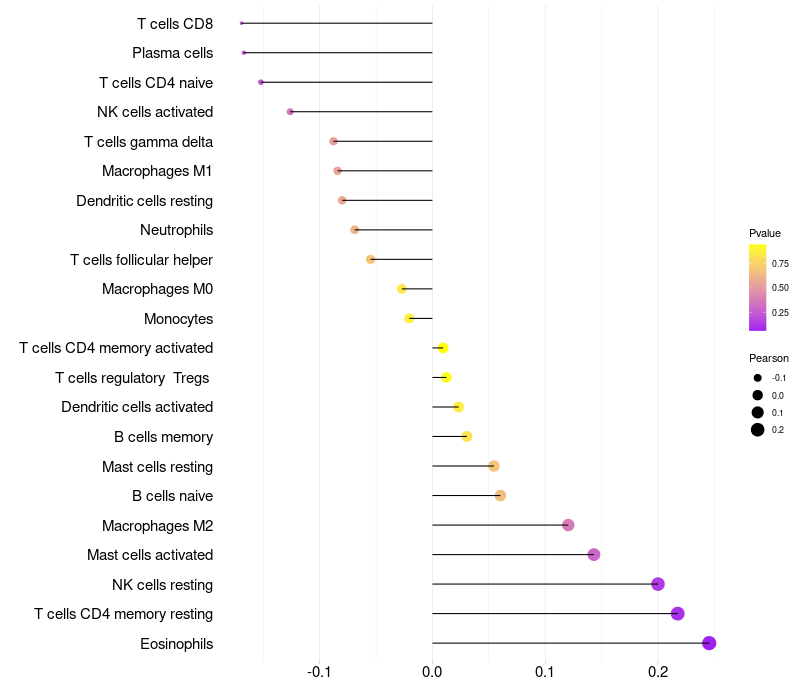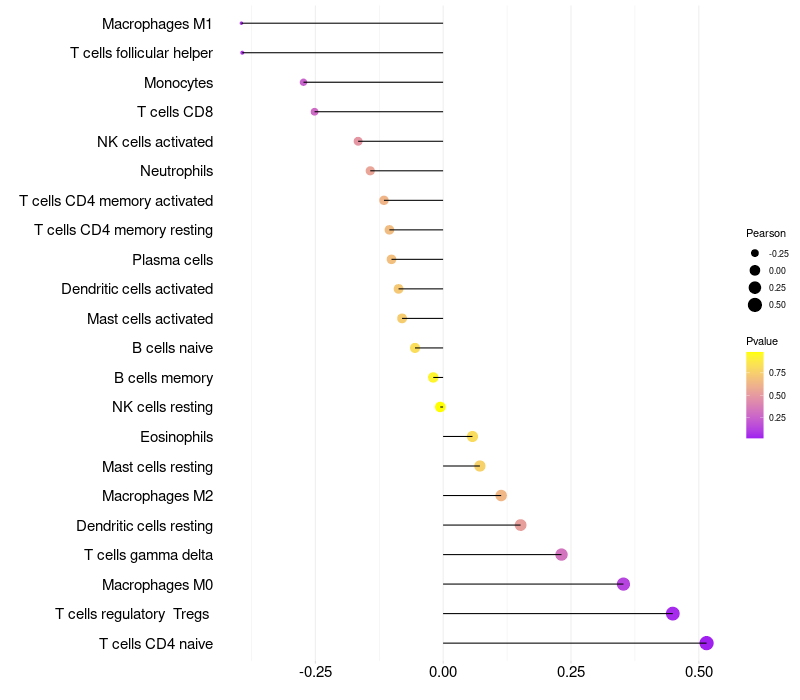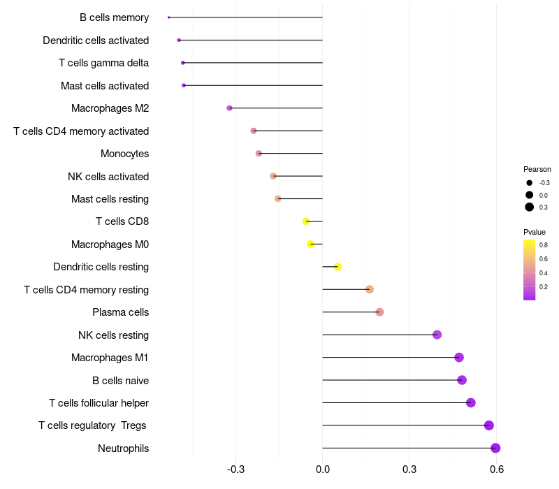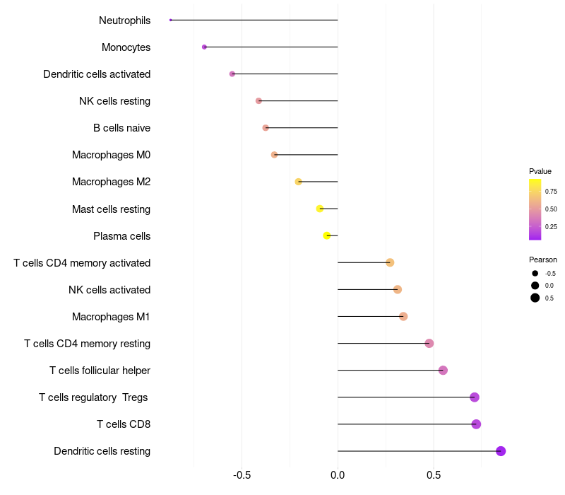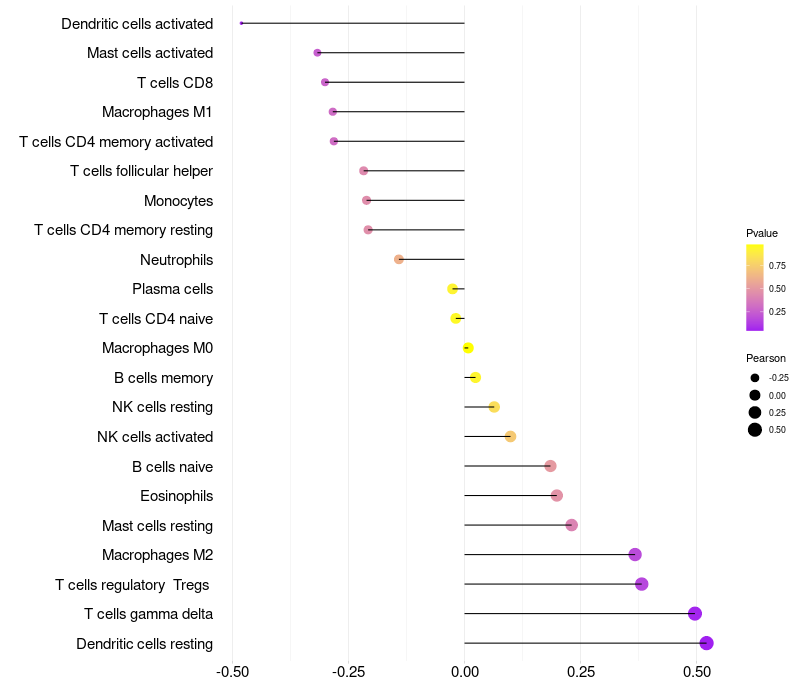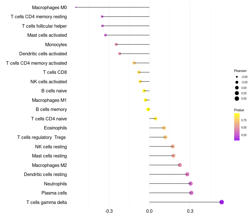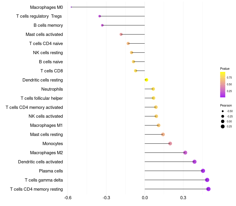 Lollipop of MRPS33 expression and immune infiltrating cell level correlation result in HPV+ samples