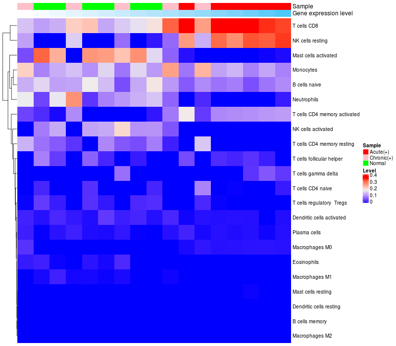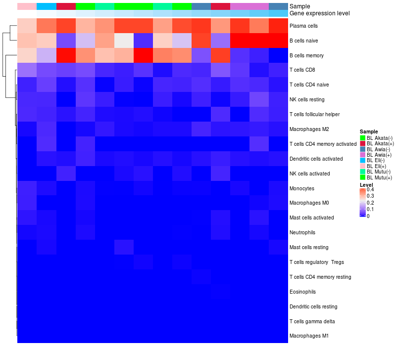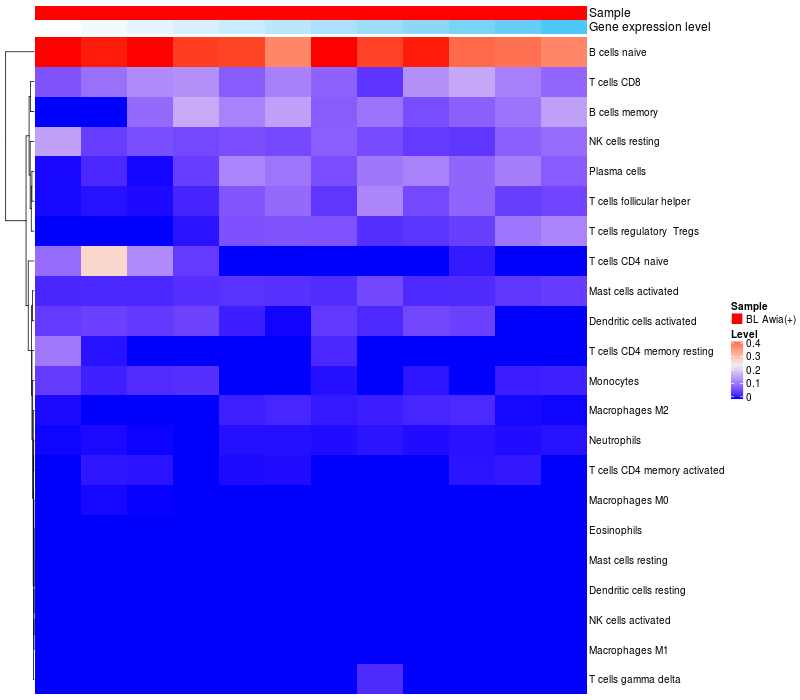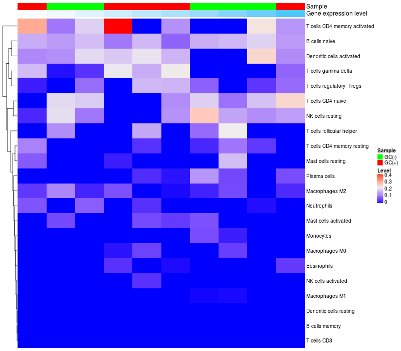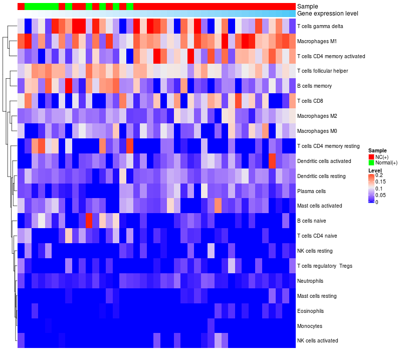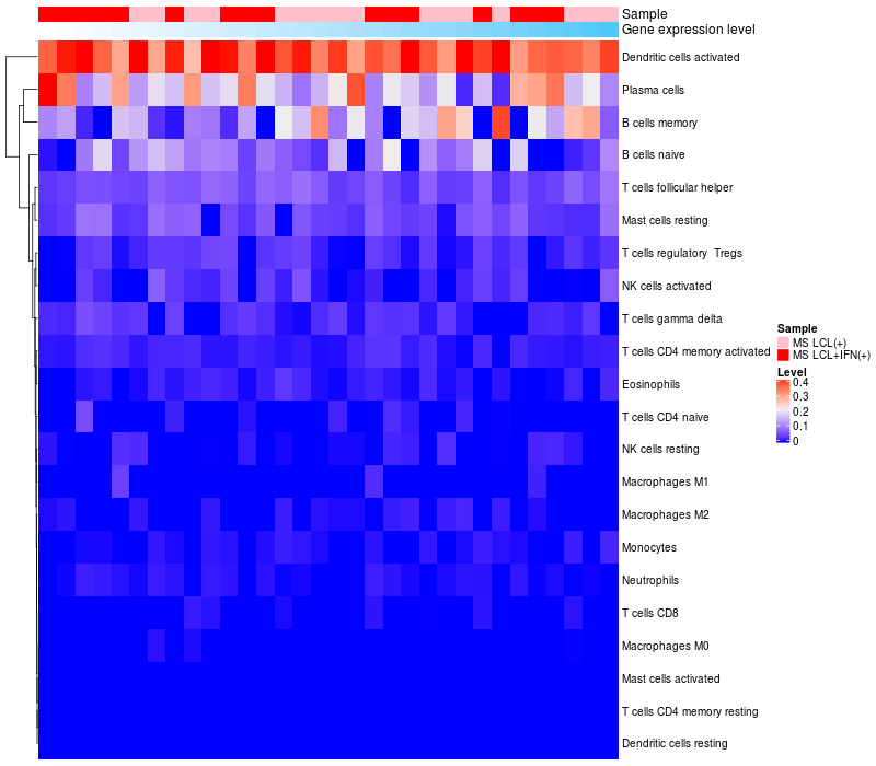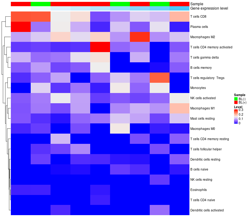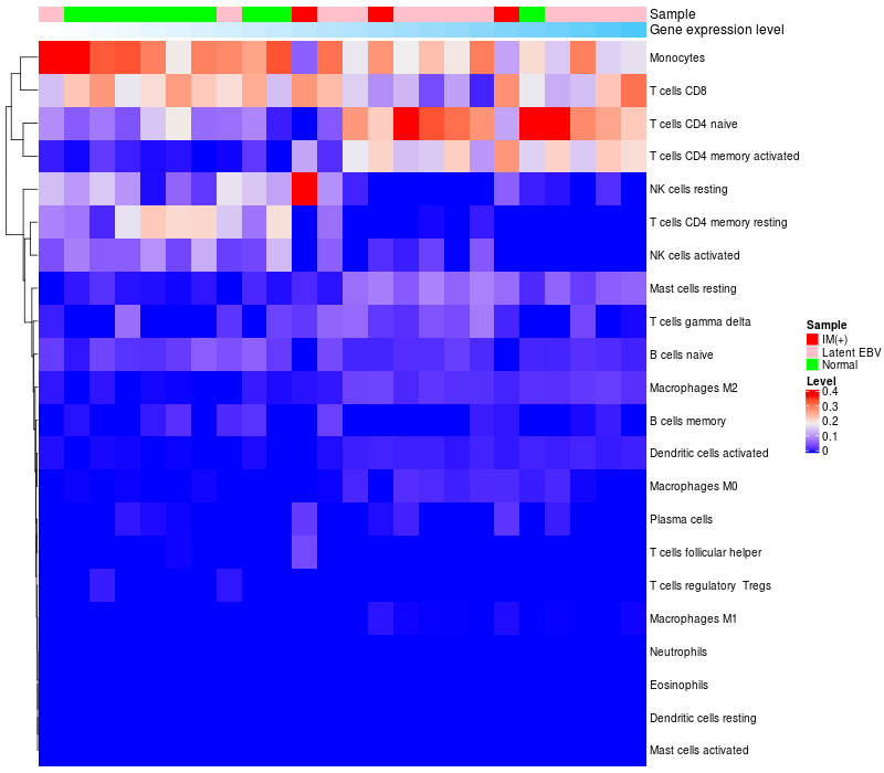 Lollipop of MSH2 expression and immune infiltrating cell level correlation result in EBV+ samples