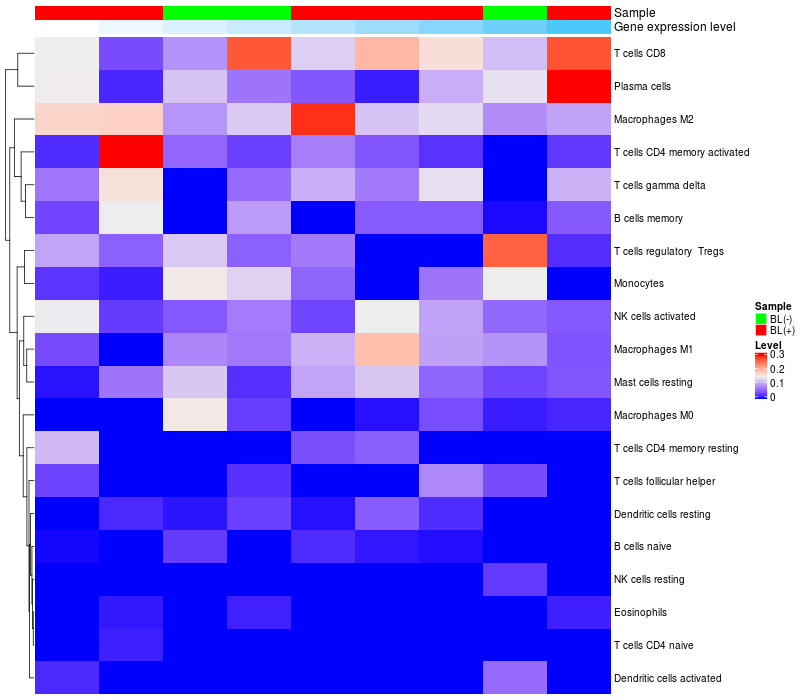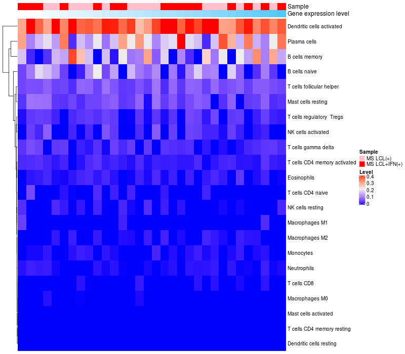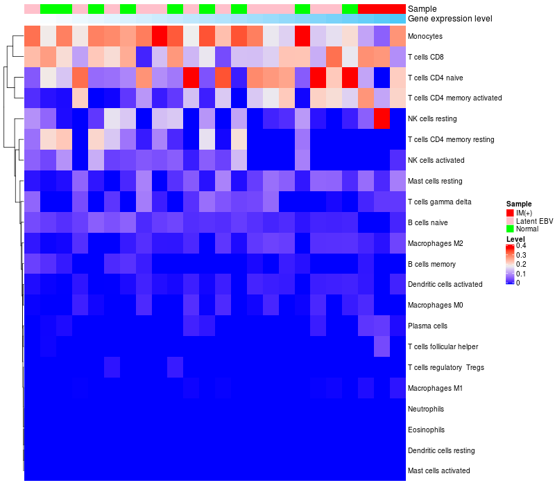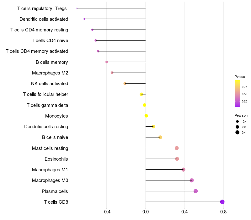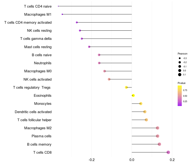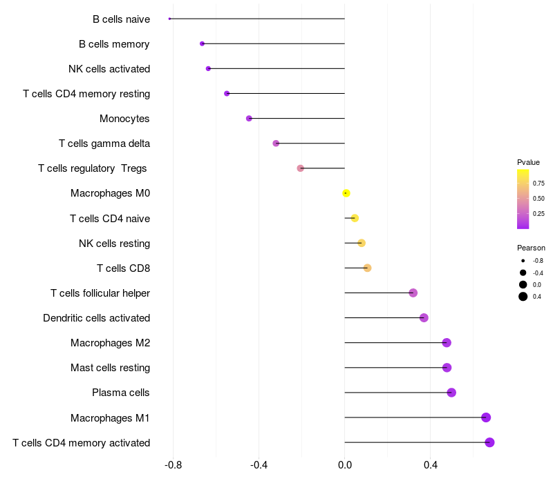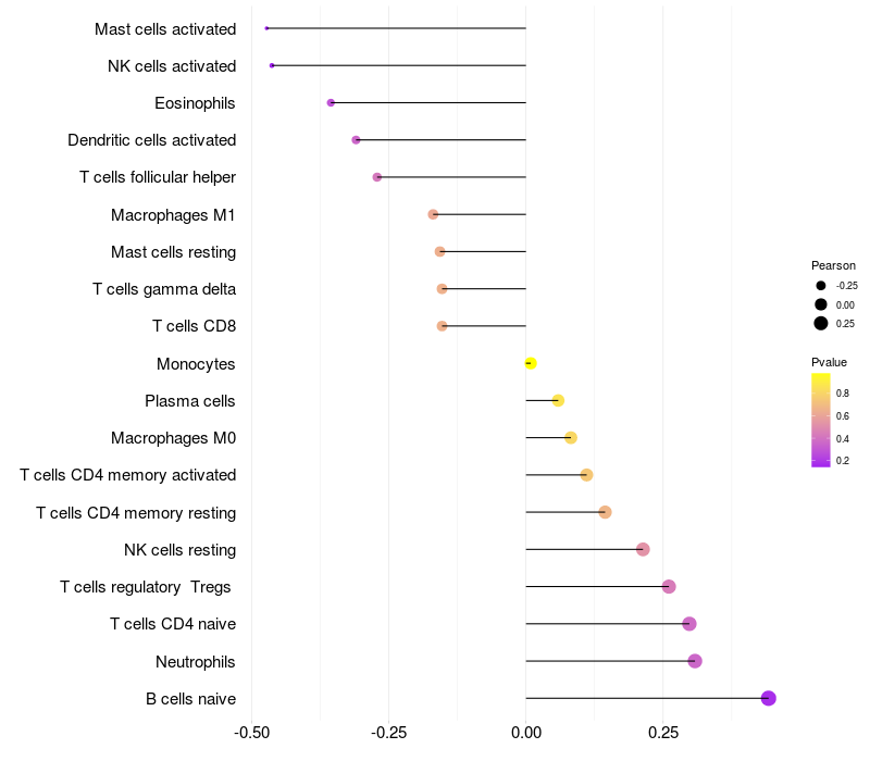 Lollipop of MSLNL expression and immune infiltrating cell level correlation result in EBV+ samples