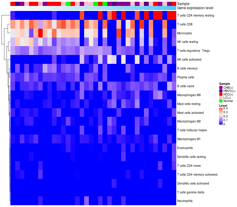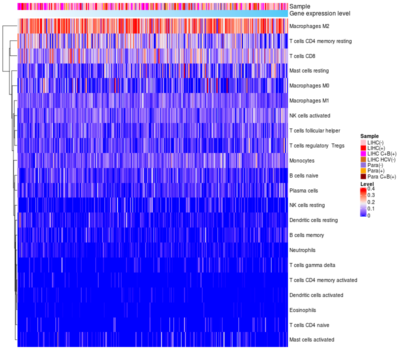 Liver hepatocellular carcinoma HCV (HBV+)(86), Liver hepatocellular carcinoma HCV (HBV-)(19), Liver hepatocellular carcinoma (HBV+)(209), Liver hepatocellular carcinoma (HBV+)(60), Paracancerous HCV (HBV+)(4), Paracancerous (HBV-)(28), Paracancerous (HBV+)(18) |