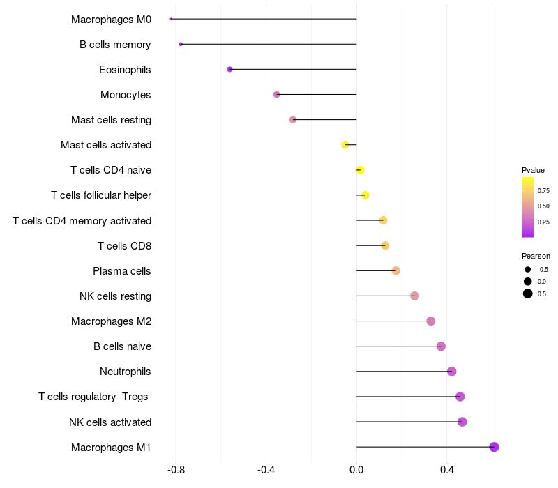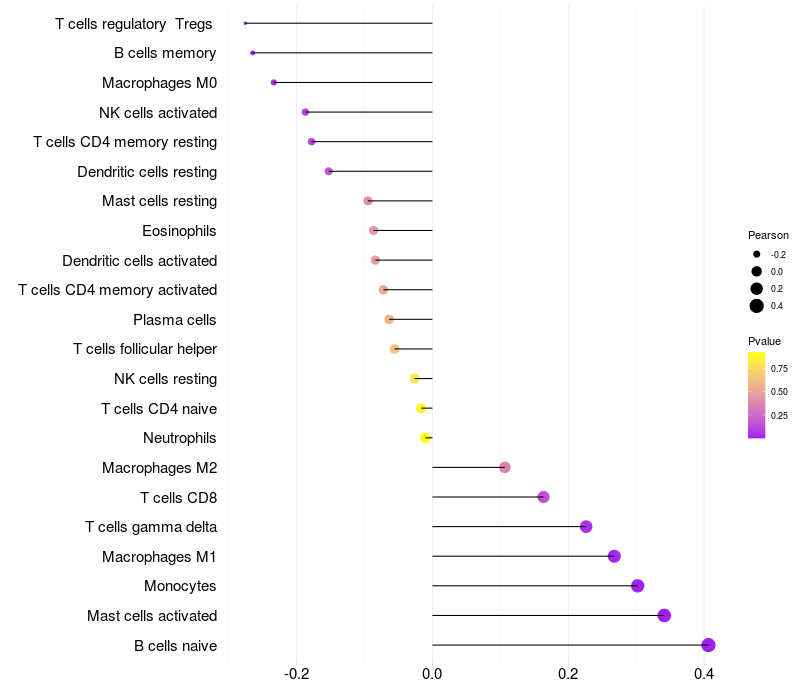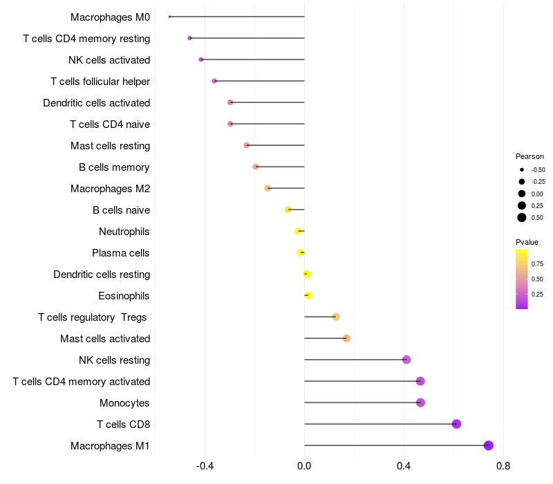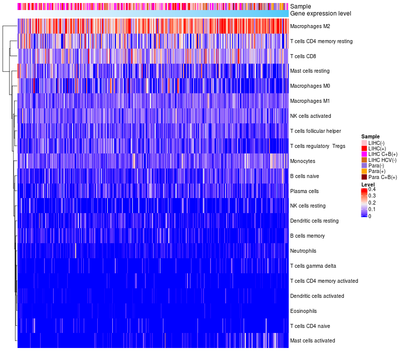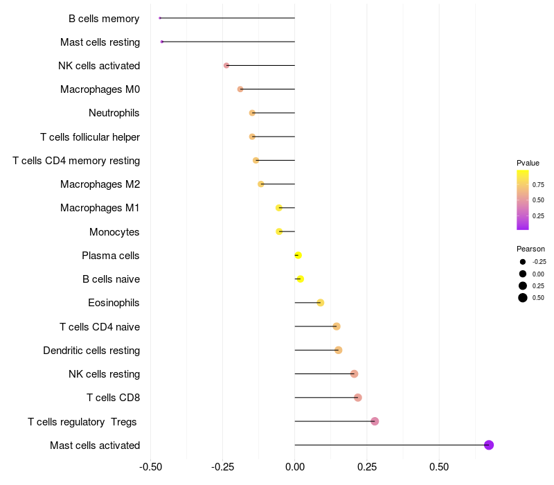 Relationship between gene expression and immune infiltrating cell level