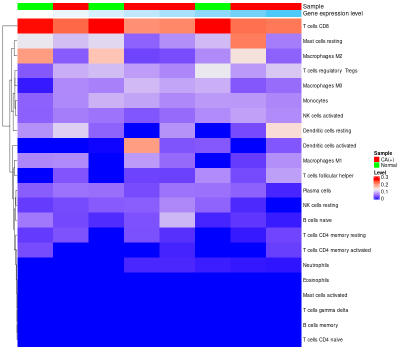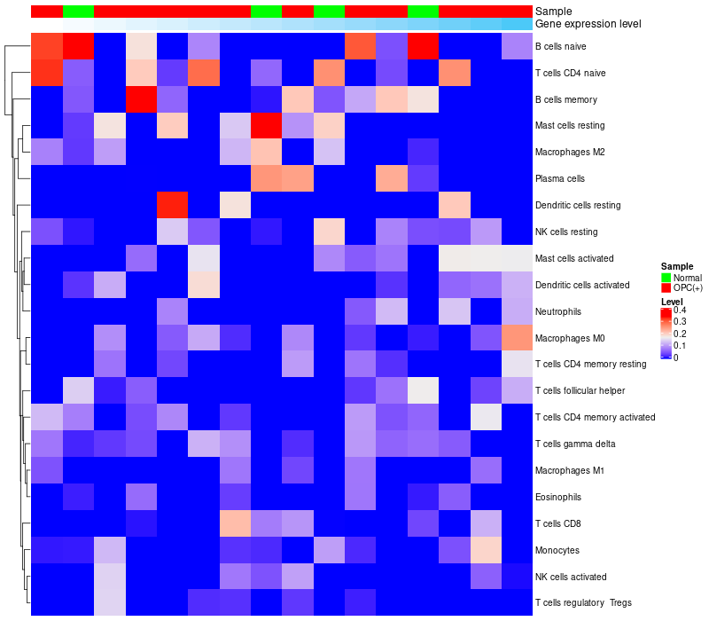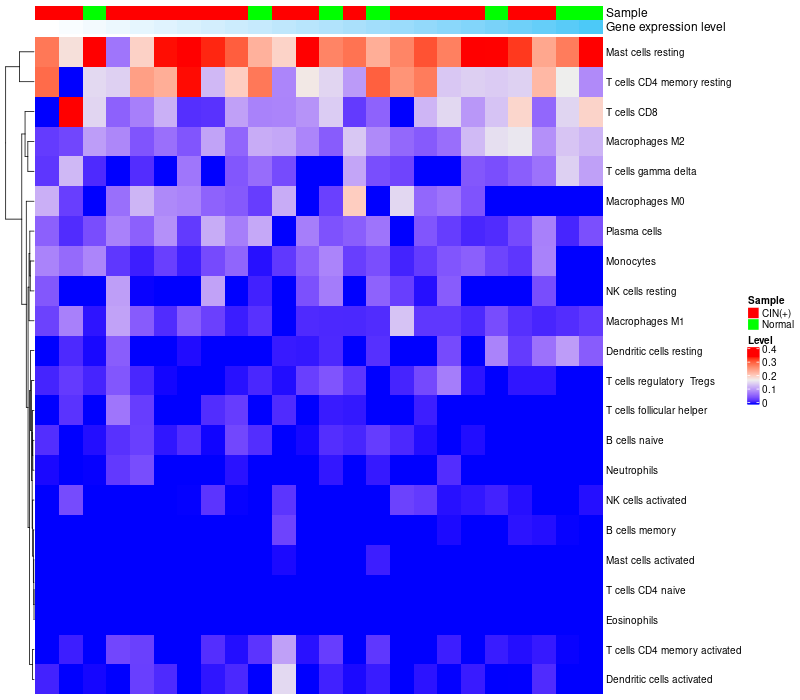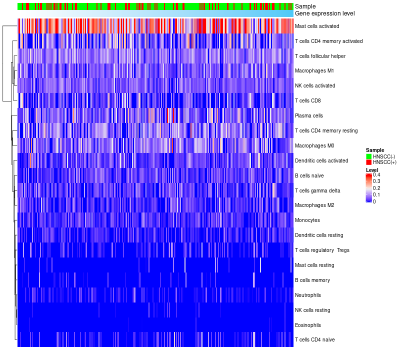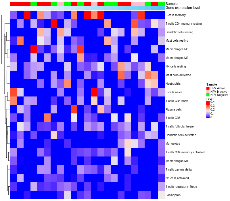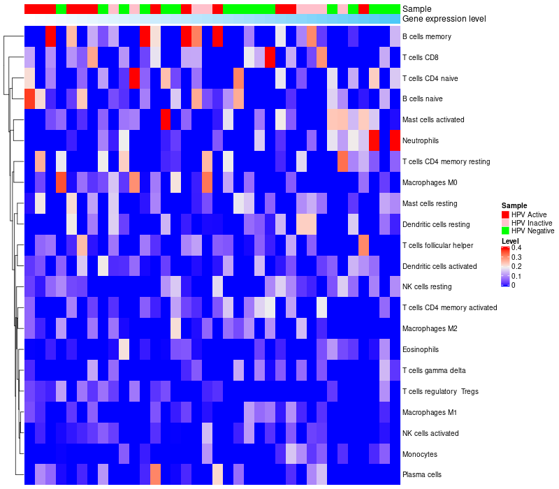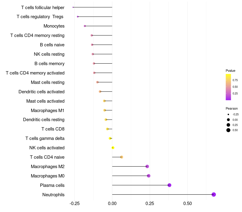Lollipop of MT4 expression and immune infiltrating cell level correlation result in HPV+ samples