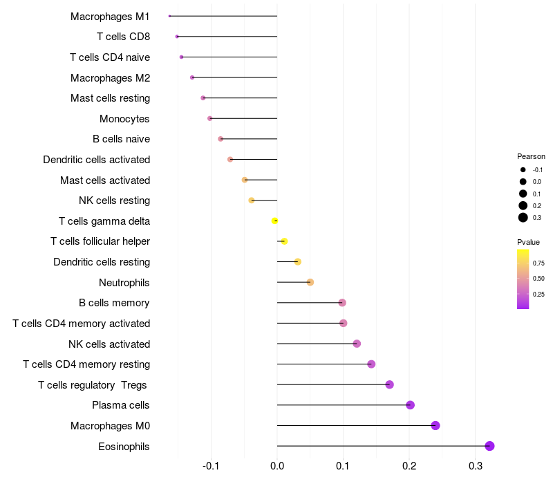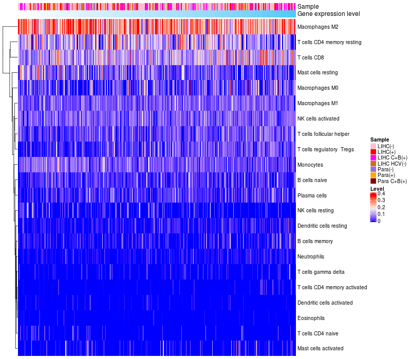 Relationship between gene expression and immune infiltrating cell level