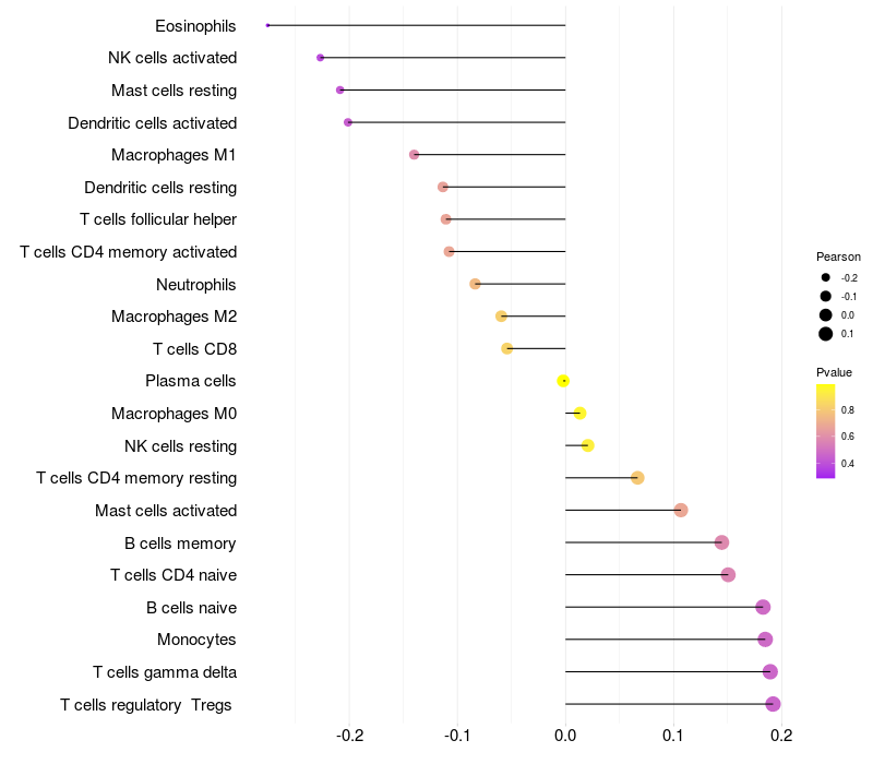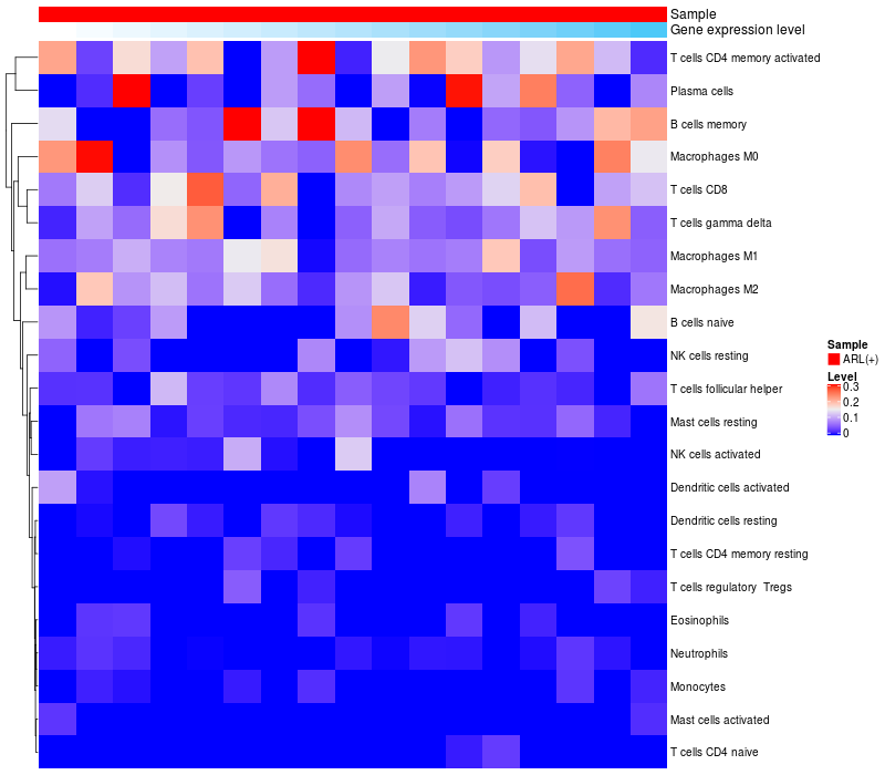 Relationship between gene expression and immune infiltrating cell level
