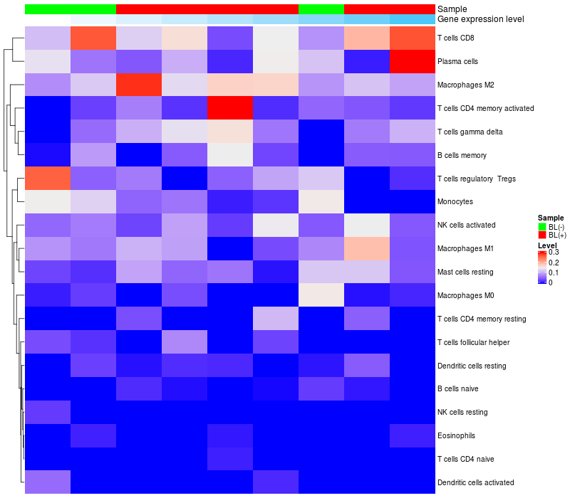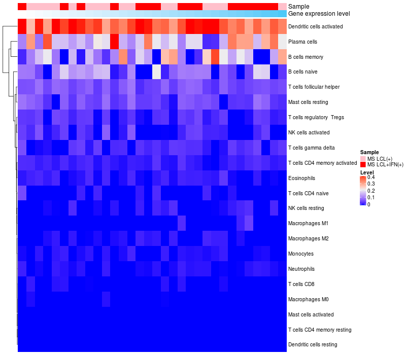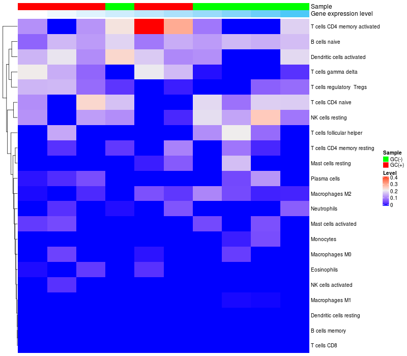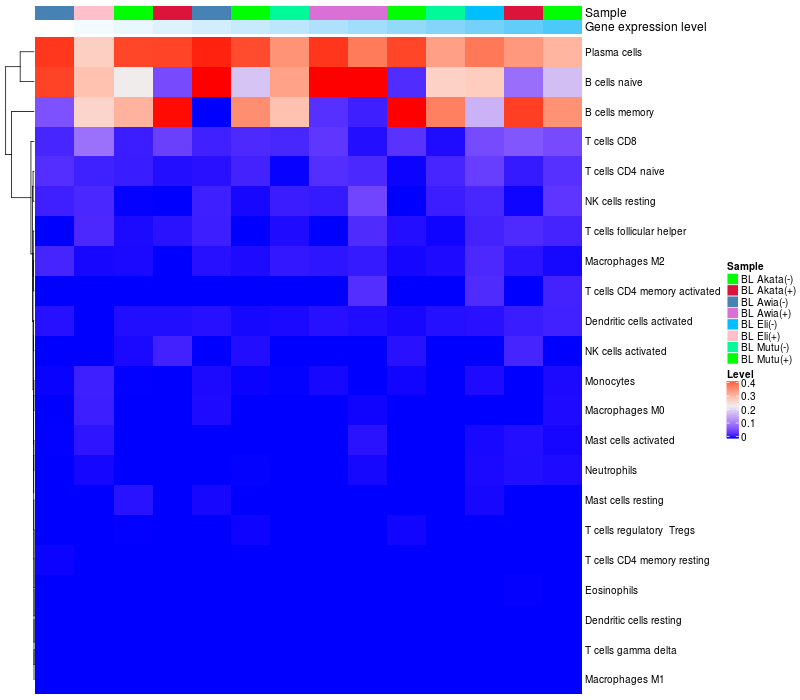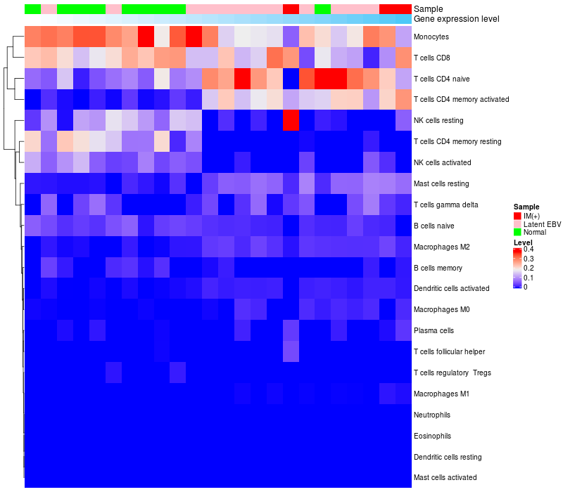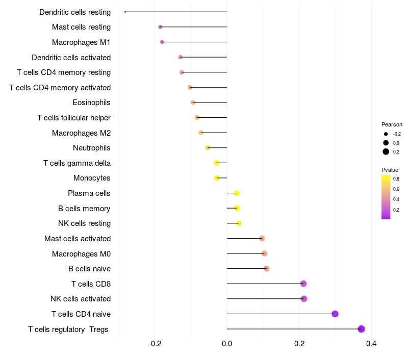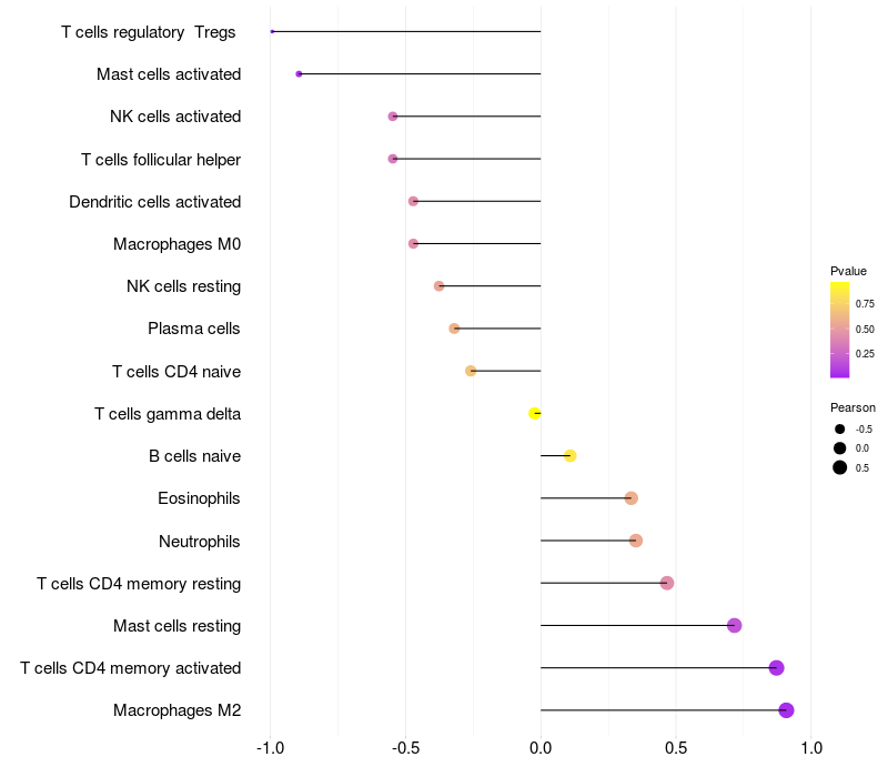 Lollipop of MTG1 expression and immune infiltrating cell level correlation result in EBV+ samples